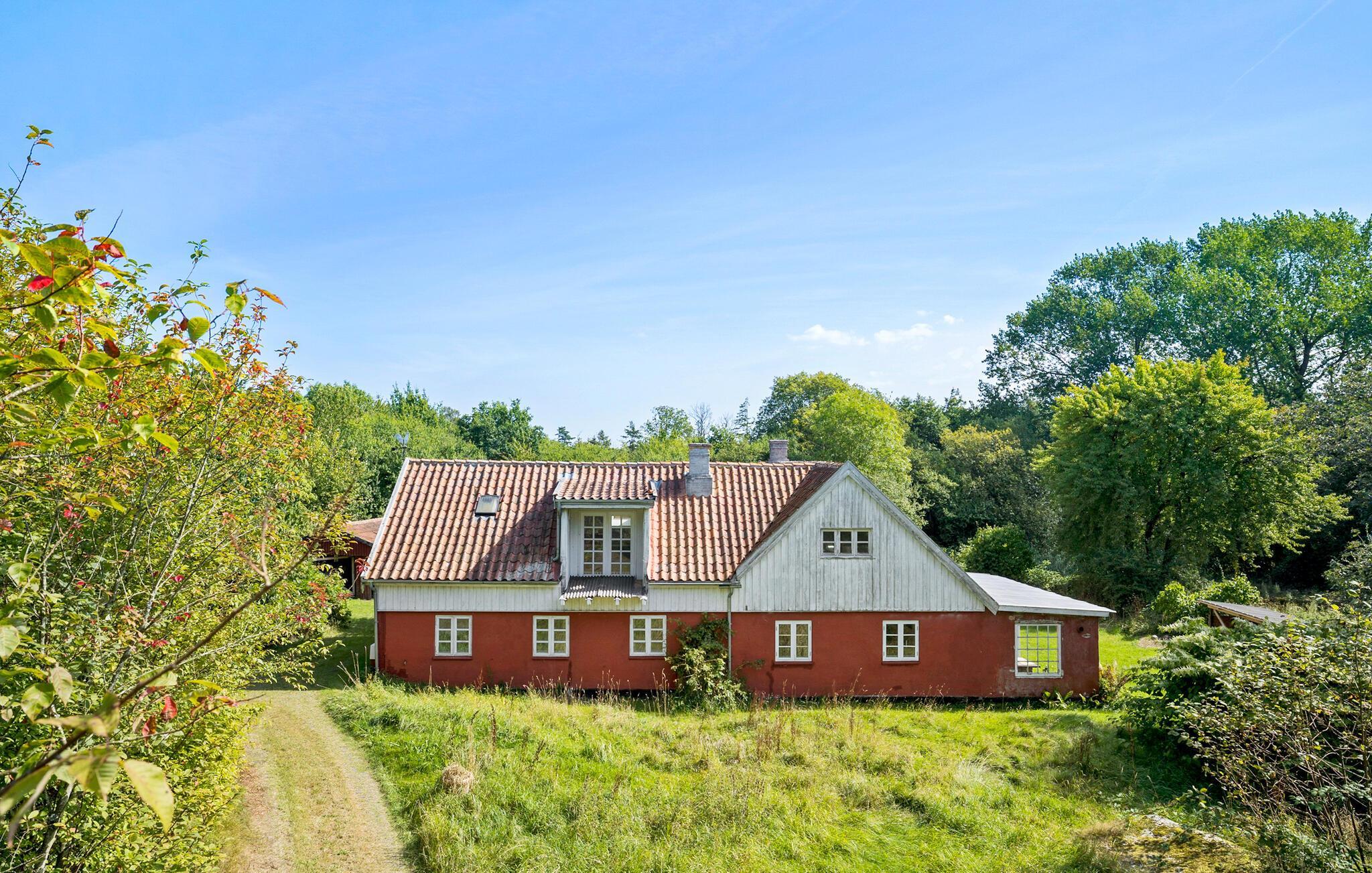 Hyggeligt landsted på Nordbornholm med rustikke detaljer og overdækket terrasse i naturskønne omgivelser.