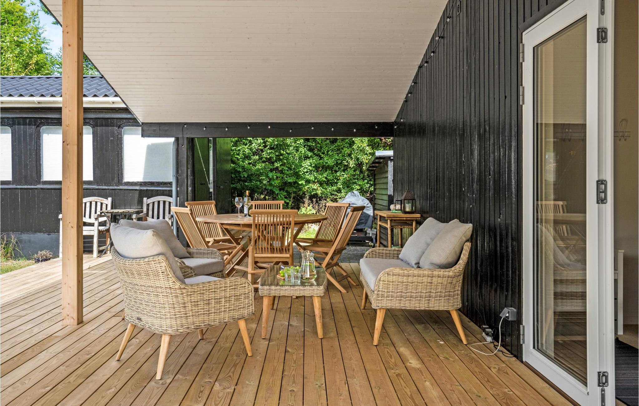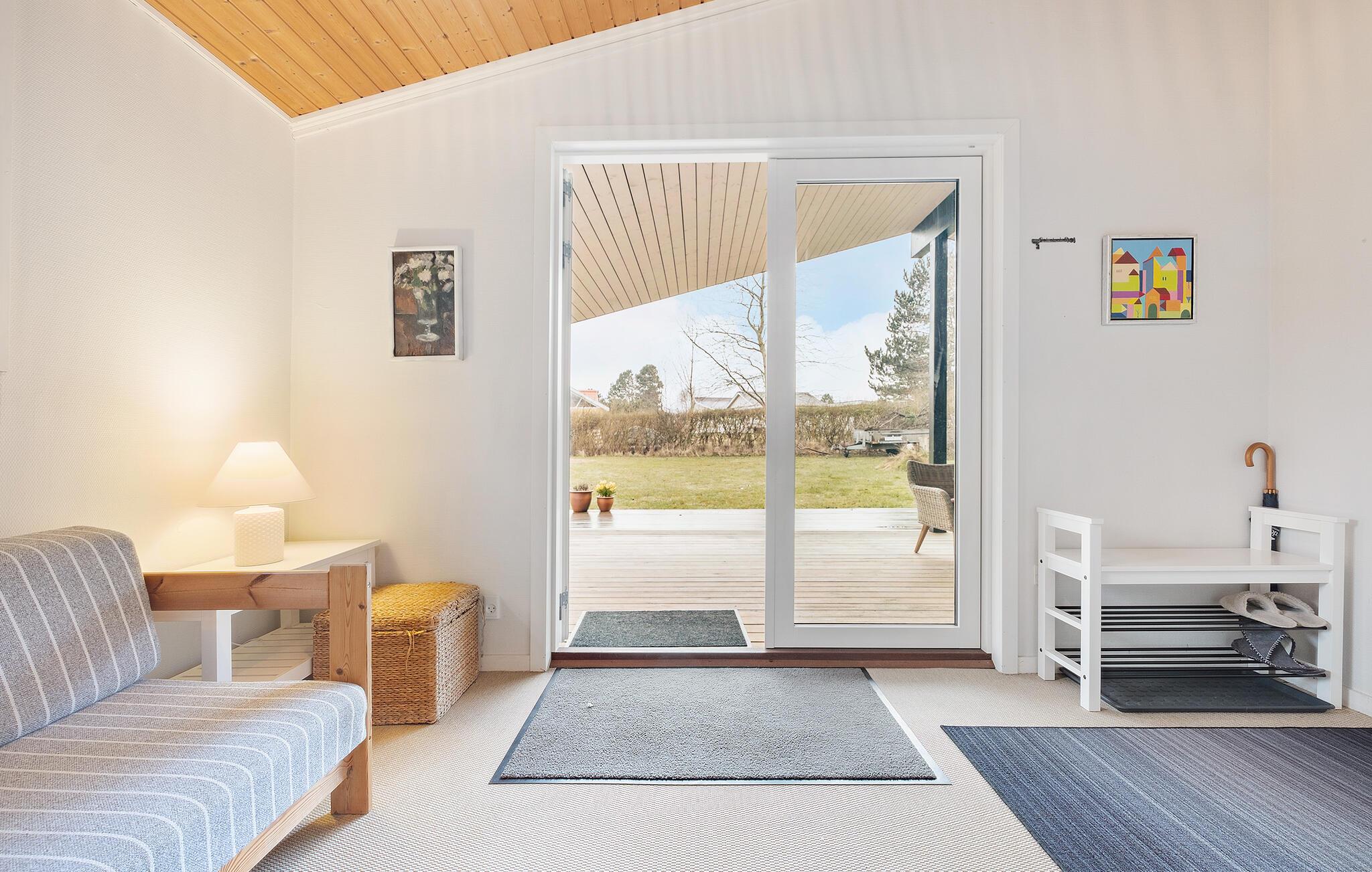 Hyggeligt sommerhus nær Klint med terrasse, brændeovn og kun 300 meter til stranden.