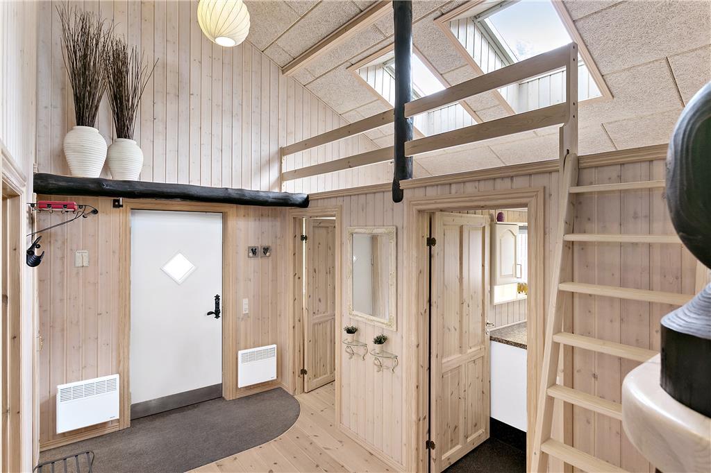 Sommerhuset på Brandisvej 19 byder dig velkommen med en hyggelig atmosfære og gennemført luksus. Indenfor finder du en smagfuldt indrettet stue med brændeovn, som spreder varme og hygge, mens flammerne danser bag glasset. Det rummelige opholdsrum indbyder til fælles stunder – hvad enten det er med brætspil ved spisebordet eller afslapning i de bløde sofaer. De store vinduespartier lukker naturen ind og skaber en lys og indbydende stemning året rundt. Med plads til 8 personer er huset ideelt for både familier og venner, der ønsker at skabe minder sammen.