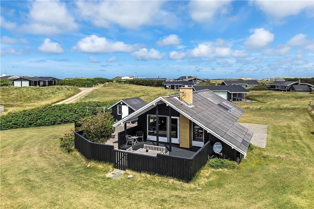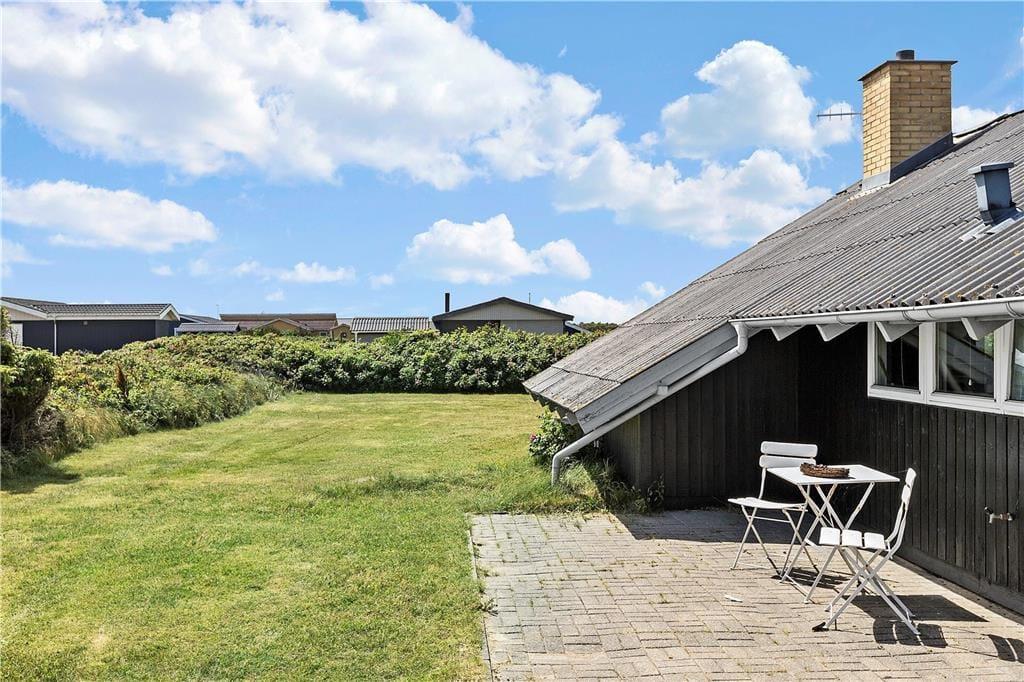 Sommerhuset ligger på en fredfyldt grund med en skøn sydvendt terrasse, hvor solen kan nydes hele dagen. Start morgenen med en kop kaffe i den friske luft, og lad børnene lege frit på grunden, mens du lader skuldrene falde ned. Om aftenen er terrassen det perfekte sted at tænde grillen og nyde de lune sommeraftener. Med stranden kun en kort gåtur væk er det nemt at tilbringe dagen med at dyppe tæerne i Vesterhavet, bygge sandslotte eller tage en forfriskende gåtur langs vandkanten.
