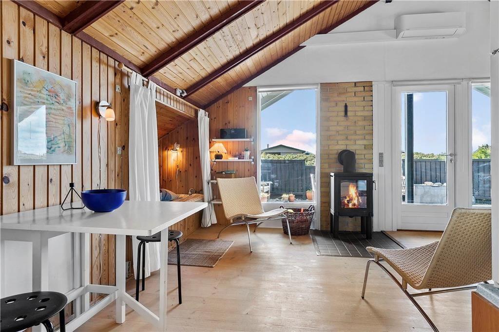 Dette sommerhus er ideelt for dem, der søger enkelhed og varme. Husets indre oser af hygge, og den knitrende brændeovn bliver hurtigt familiens samlingspunkt, hvor der kan slappes af efter en dag i den friske havluft. Selvom huset er mindre velholdt, har det sin egen charmerende karakter, der inviterer til samvær og afslapning. Indretningen er enkel og praktisk med plads til op til seks personer, hvilket gør det oplagt til en familieferie eller en tur med vennerne. Her er rammerne sat for hyggelige måltider og afslappende aftener i godt selskab.