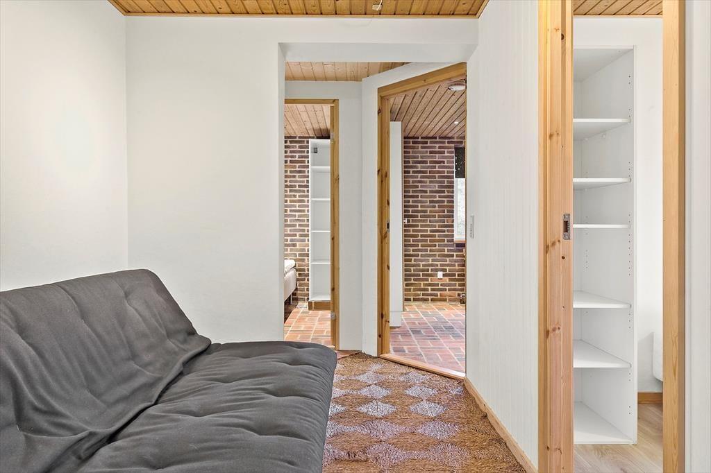 Udenfor venter en stor, privat grund, hvor du kan slappe af på terrassen og nyde solen og den friske luft. Huset ligger for enden af en rolig grusvej i et fredeligt sommerhusområde, hvilket giver dig den perfekte ramme for at nyde naturen i fulde drag. Her kan du også tage din hund med, da husdyr er tilladt, og nyde en lang gåtur i naturen, som begynder lige udenfor døren.