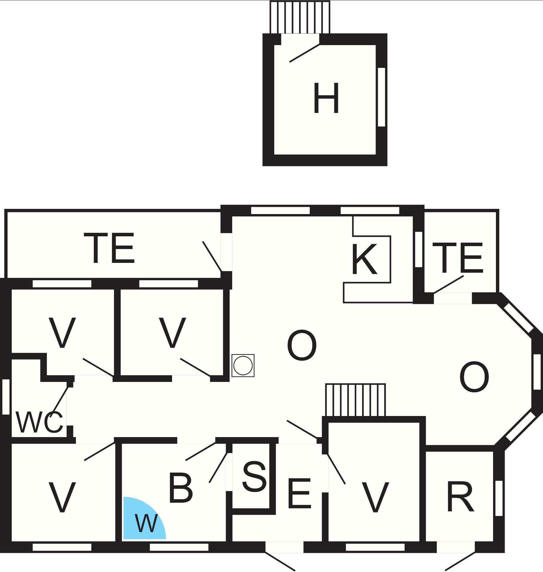 Dette spændende feriehus ligger i rolige omgivelser på en naturgrund. Der er havudsigt fra husets 1. sal, og fra havestuen er der udsigt over området. udsigt over området. Huset er bygget i forskudte niveauer. Fra den lille stue på 1. sal er det muligt at se Vesterhavet. Huset er indrettet med fire store soveværelser og en hems, hvilket betyder, at huset er velegnet til til to familier. Derudover er der to badeværelser, begge med bruser og toilet. toilet. Et af badeværelserne har spabad og sauna. Huset er lyst indrettet overalt, og der er direkte adgang til den overdækkede terrasse. Der er også store terrasser på syd- og vestsiden af huset. Velmøbleret stue med brændeovn og direkte adgang til køkkenområdet. Der er også en stor kummefryser, puslebord og babybadekar. På et forskudt niveau er der adgang til endnu et opholdsrum og en stor havestue.
