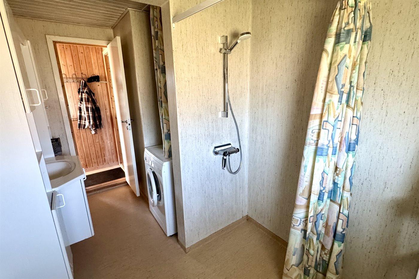 Der er 1 badeværelse med bruseniche og 1 toilet.