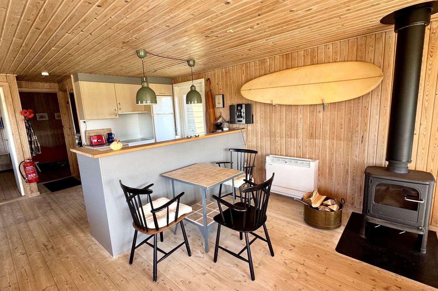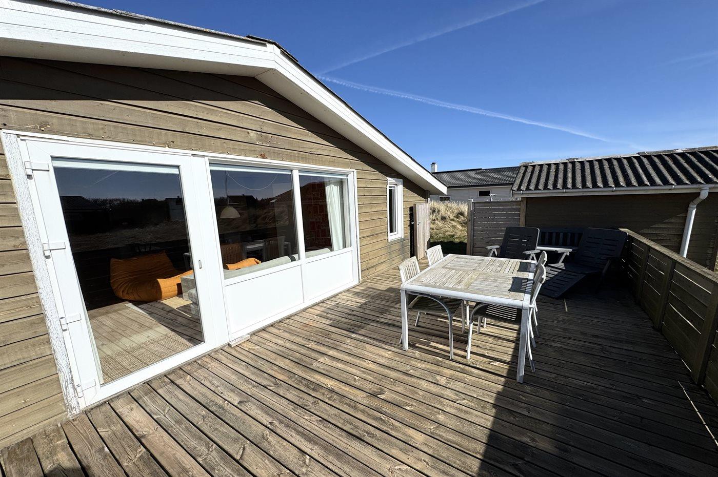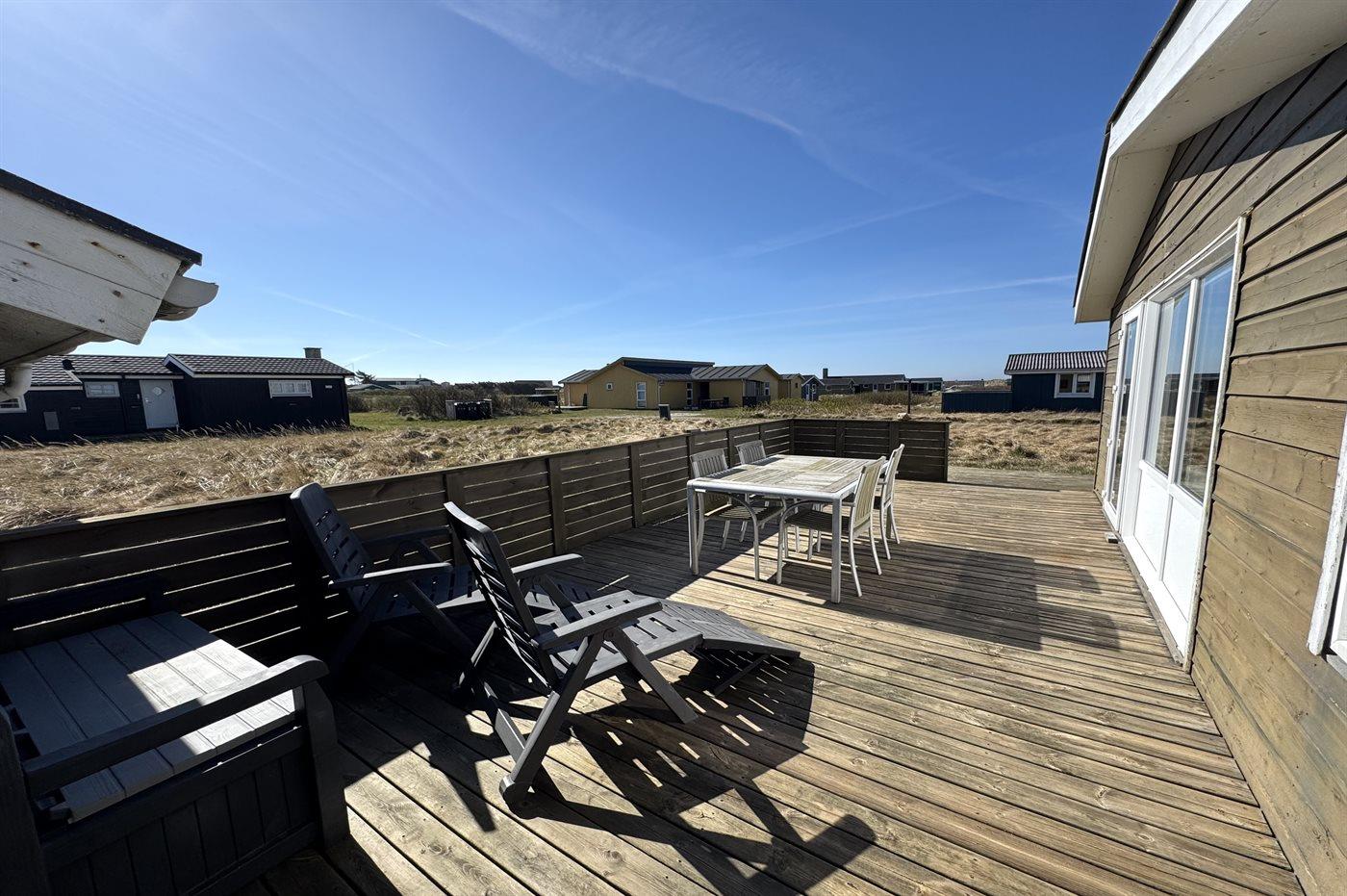 Rummeligt sommerhus med brændeovn, tæt på havet og med stor terrasse i naturskønne Klitmøller.