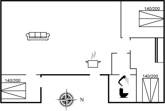 Der er i alt 3 soveværelser. Sovepladserne fordeler sig på: 4 sovepladser i dobbeltsenge. 4 sovepladser i køjesenge.