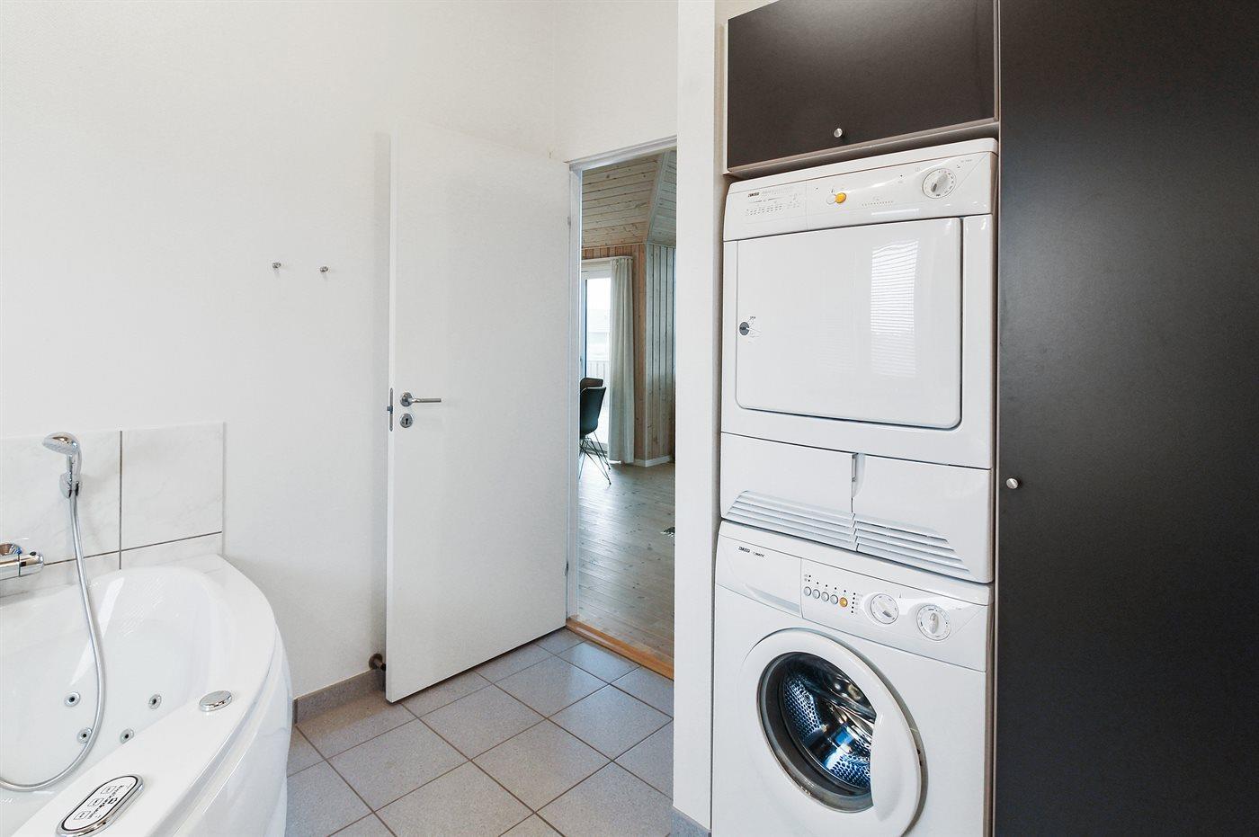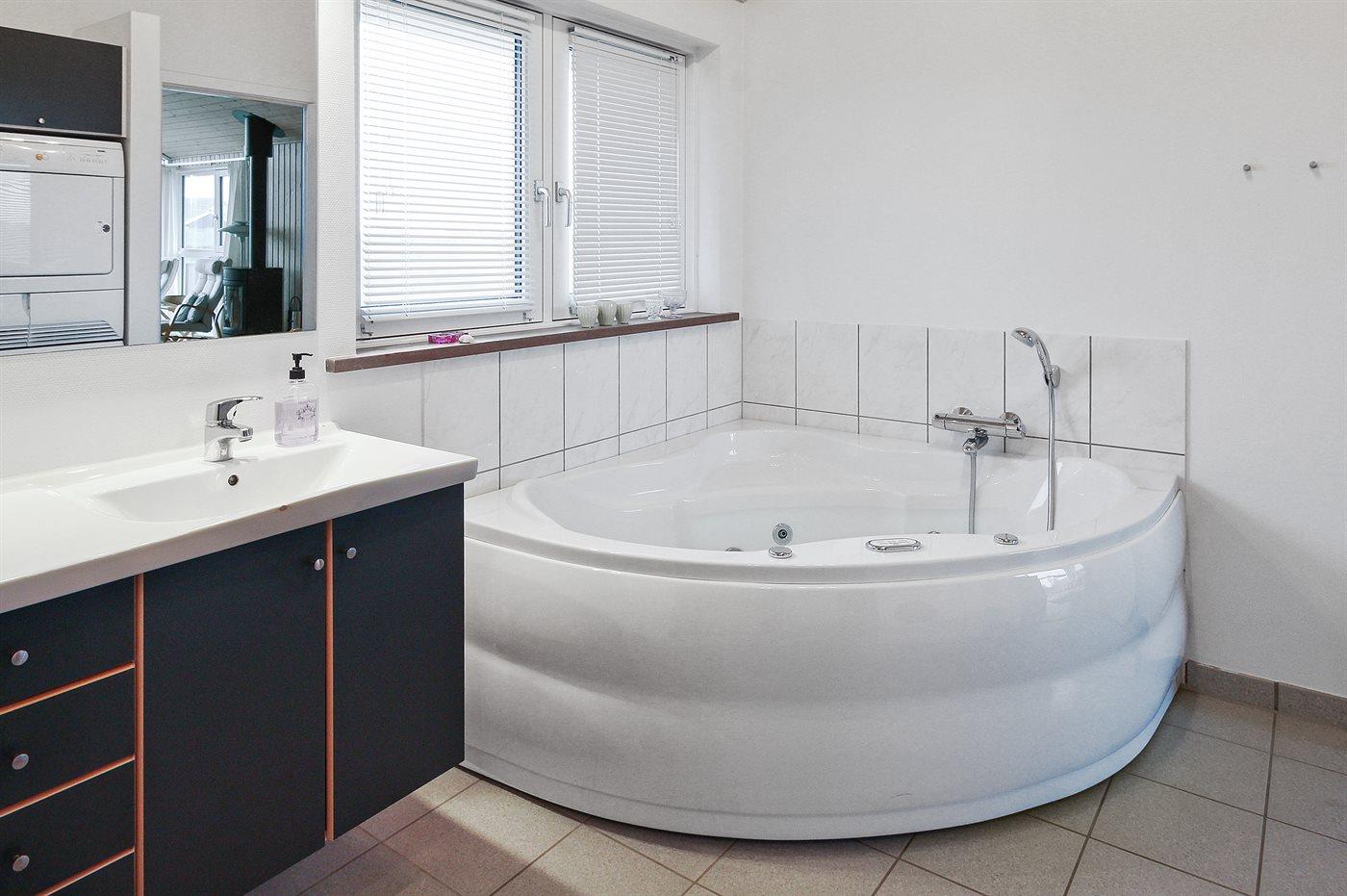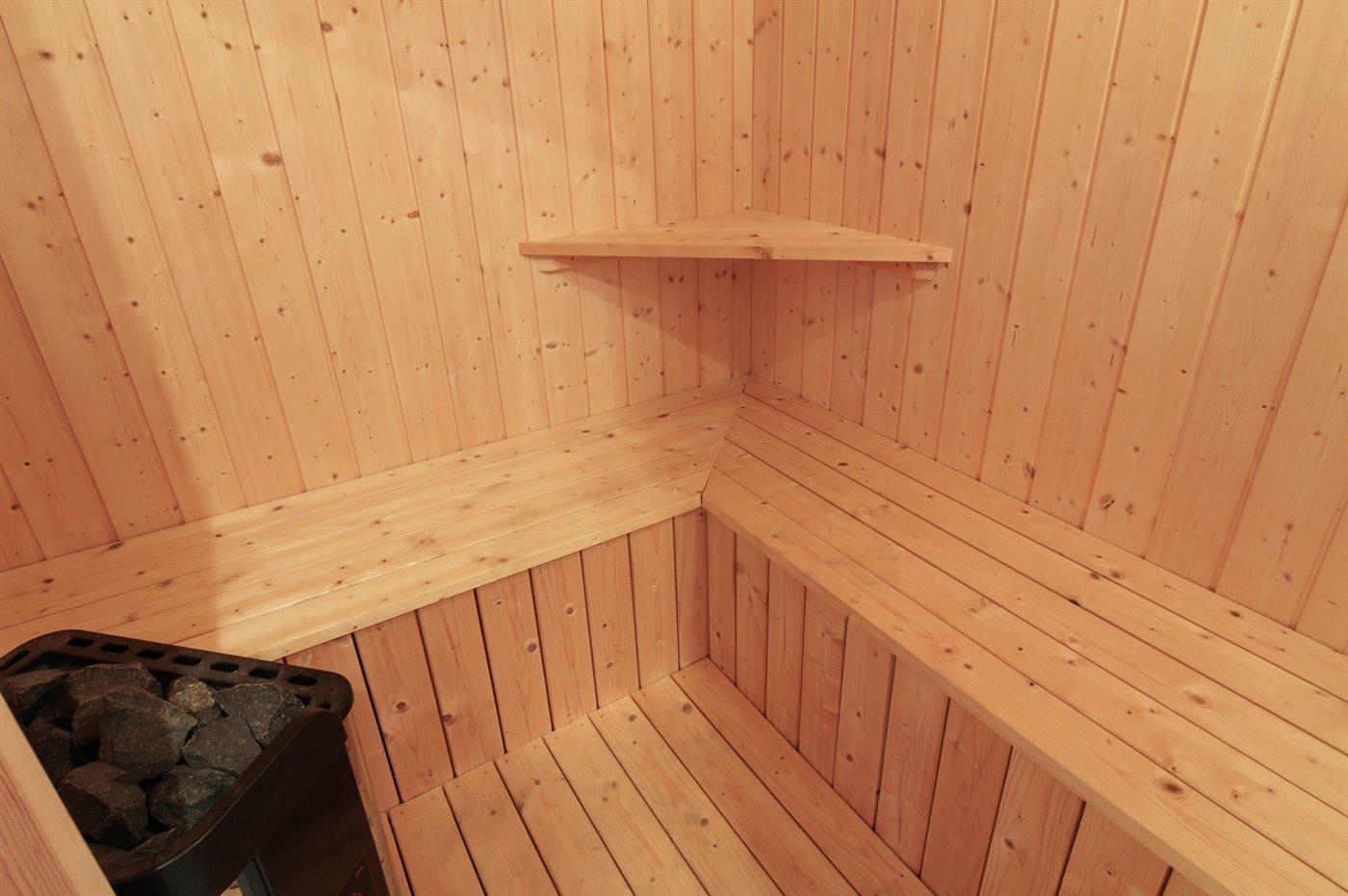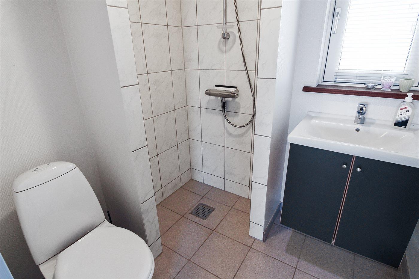 Der er 2 badeværelser med bruseniche og 2 toiletter. Der er gulvvarme på 2 badeværelser. I saunaen er der mulighed for afslapning.