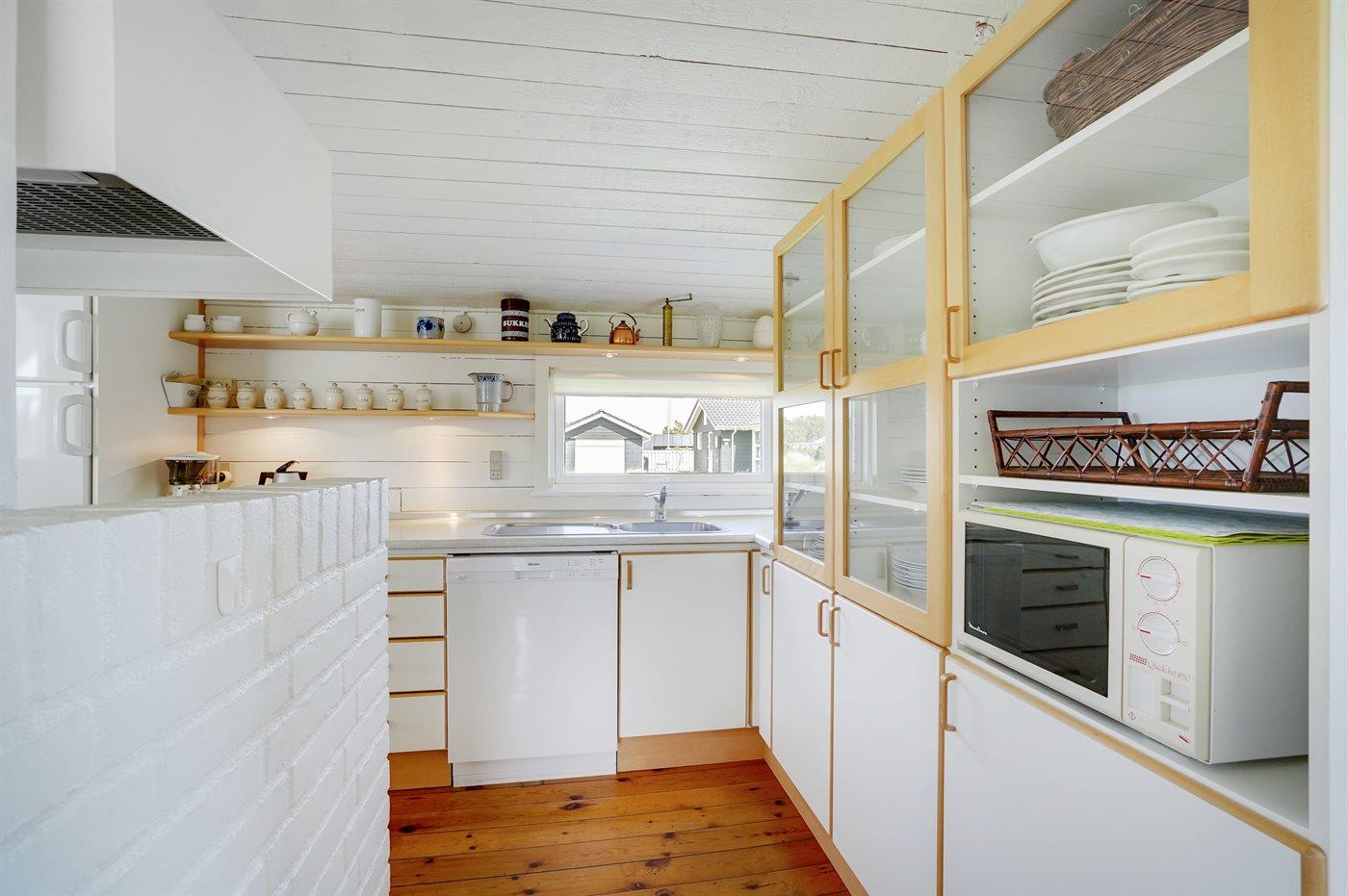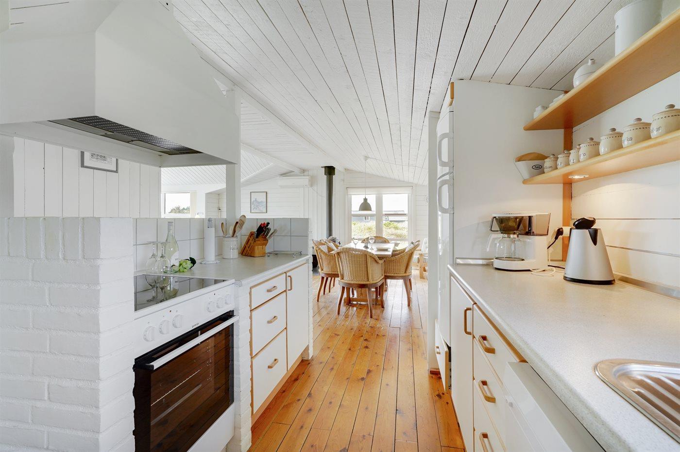 Køkkenet er udstyret med 1 køleskab. Der er 4 keramiske kogeplader, varmluftovn, mikrobølgeovn samt opvaskemaskine.