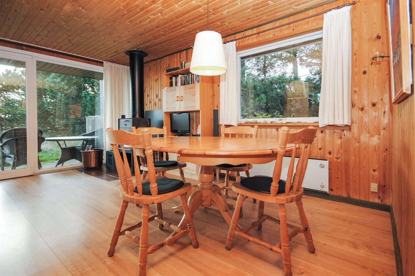 I læ af en beplantning af gran og fyr ligger dette sommerhus en smule tilbagetrukket fra Johns Vej. Fra huset er der en dejlig udsigt over klitheden mod Nystrup Klitplantage.