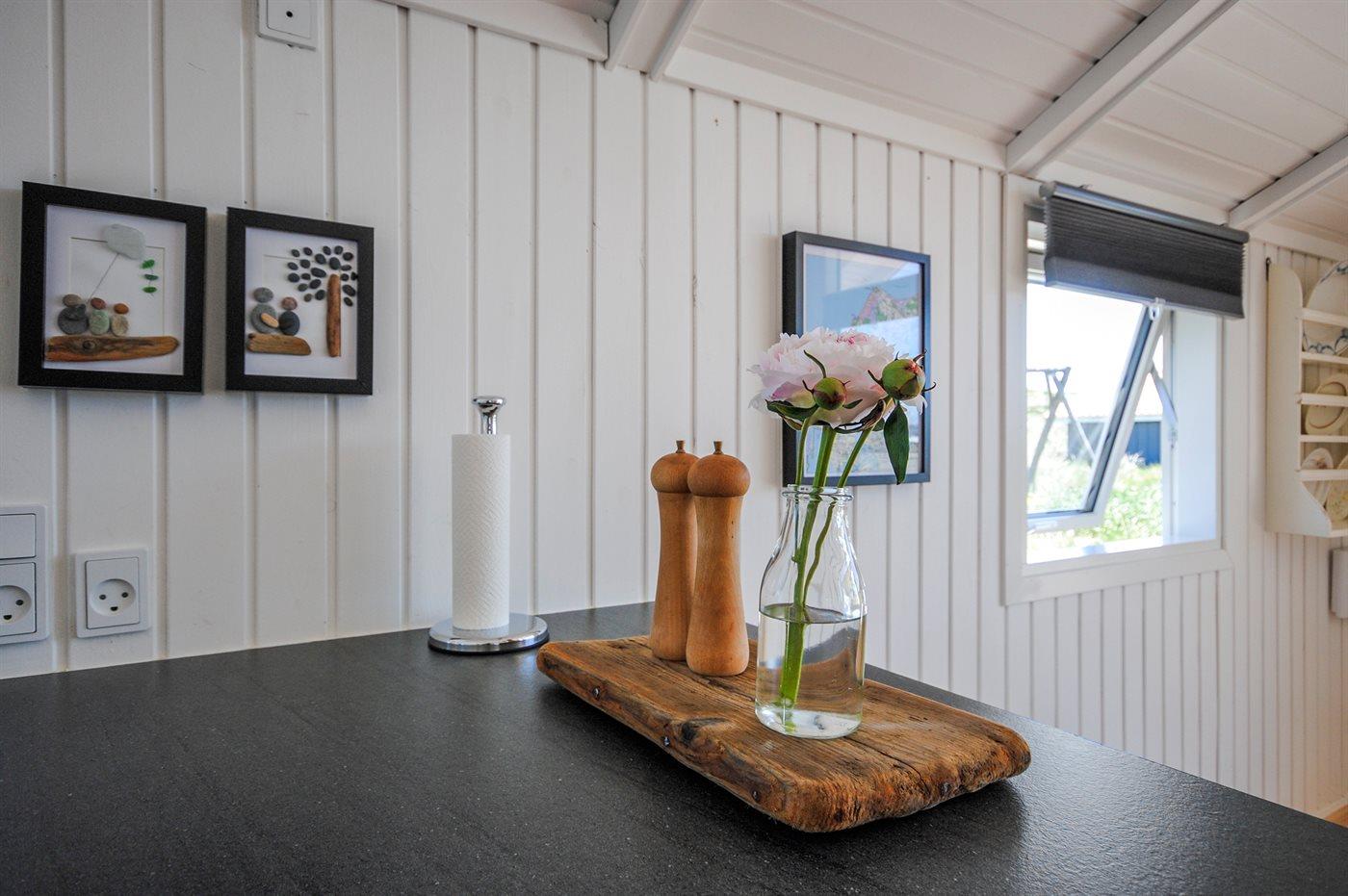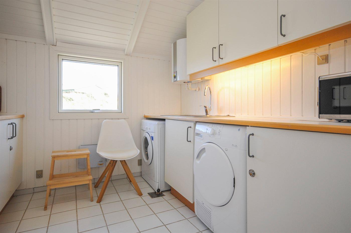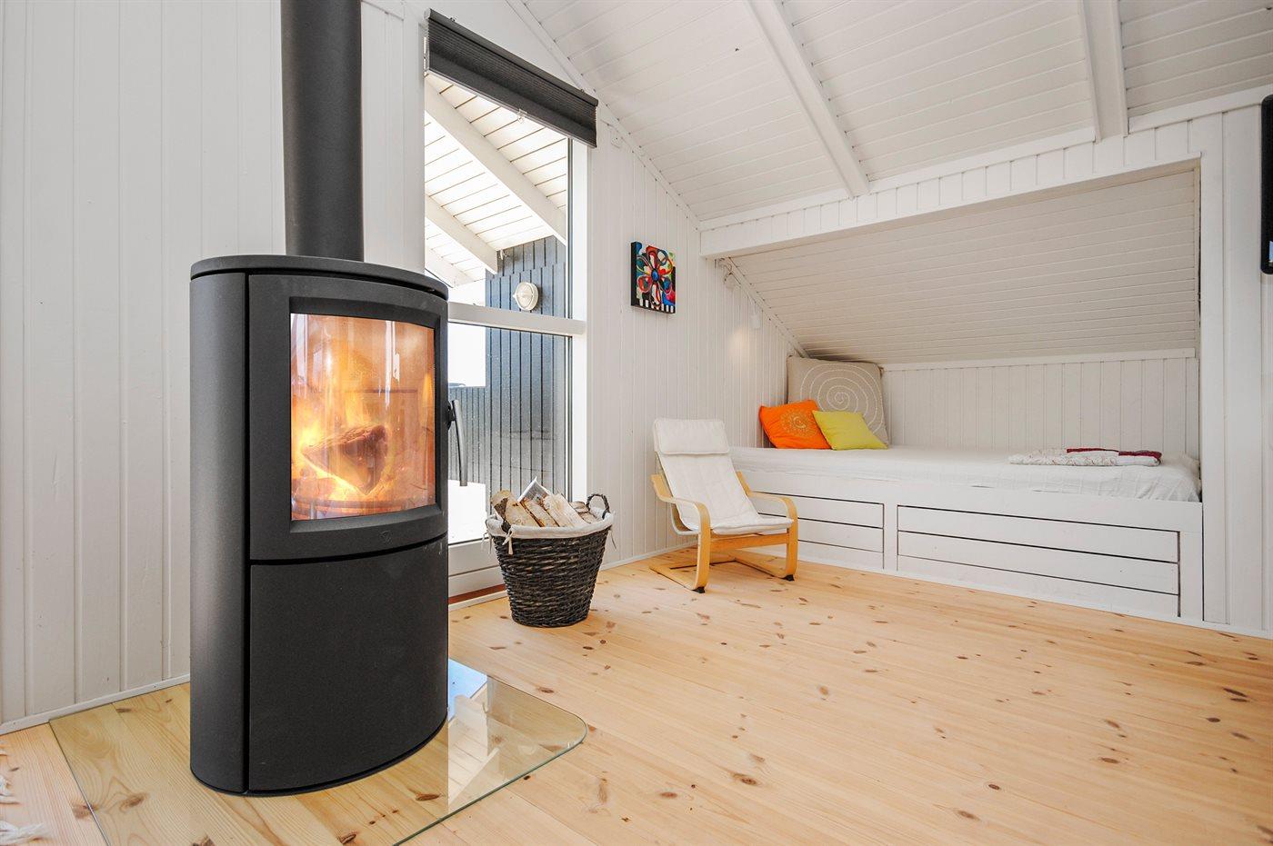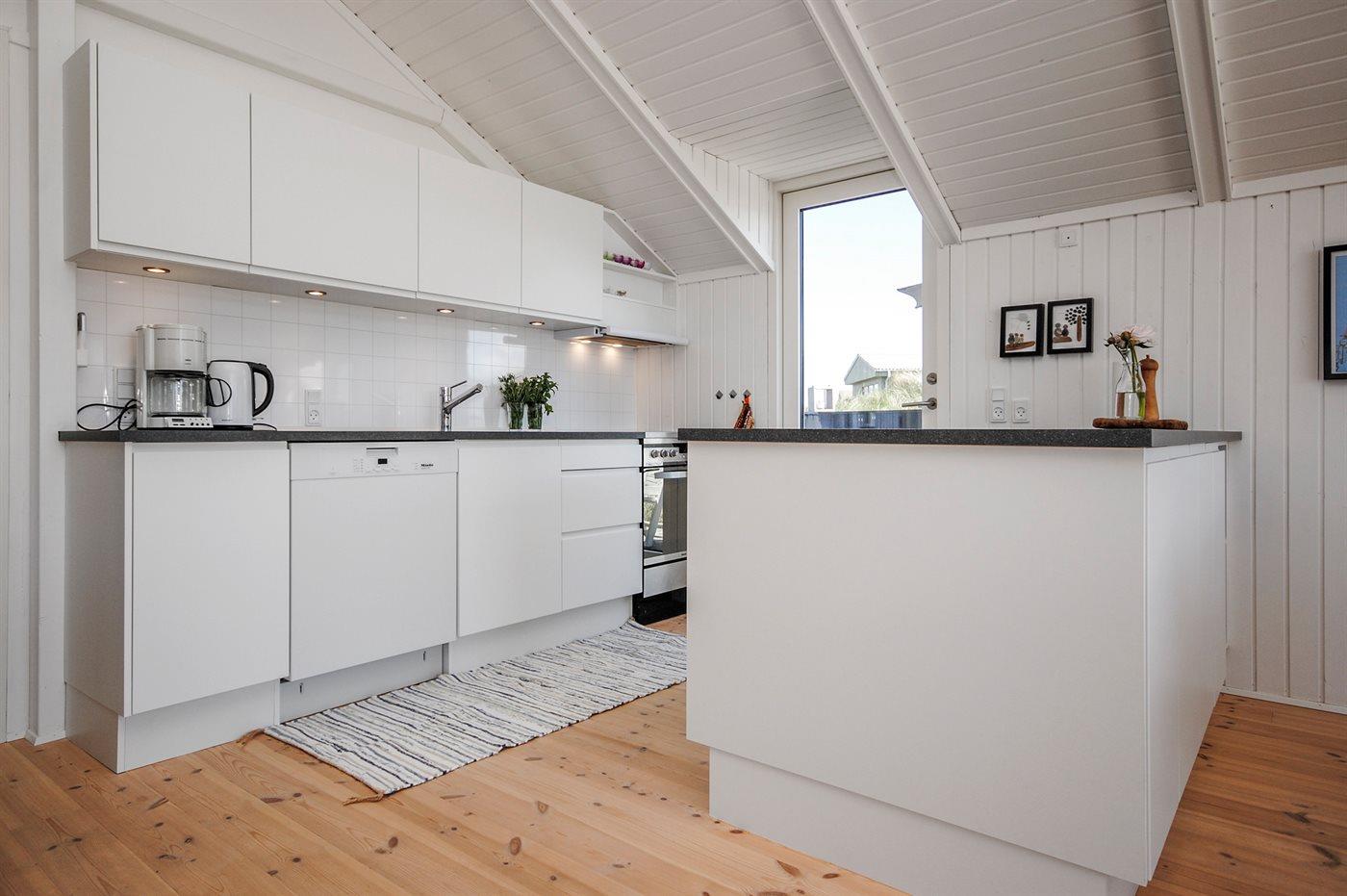 Køkken fra 2017- alrum/stue med brændeovn fra 2017, TV med PARABOL, DVD samt dobbeltalkove. Høj barnestol. Komfur med keramiske kogeplader, emhætte, køleskab, mikrobølgeovn, elkedel, kaffemaskine, æggekoger og OPVASKEMASKINE. Soveværelse med dobbeltseng (180 cm bred boxmadras).