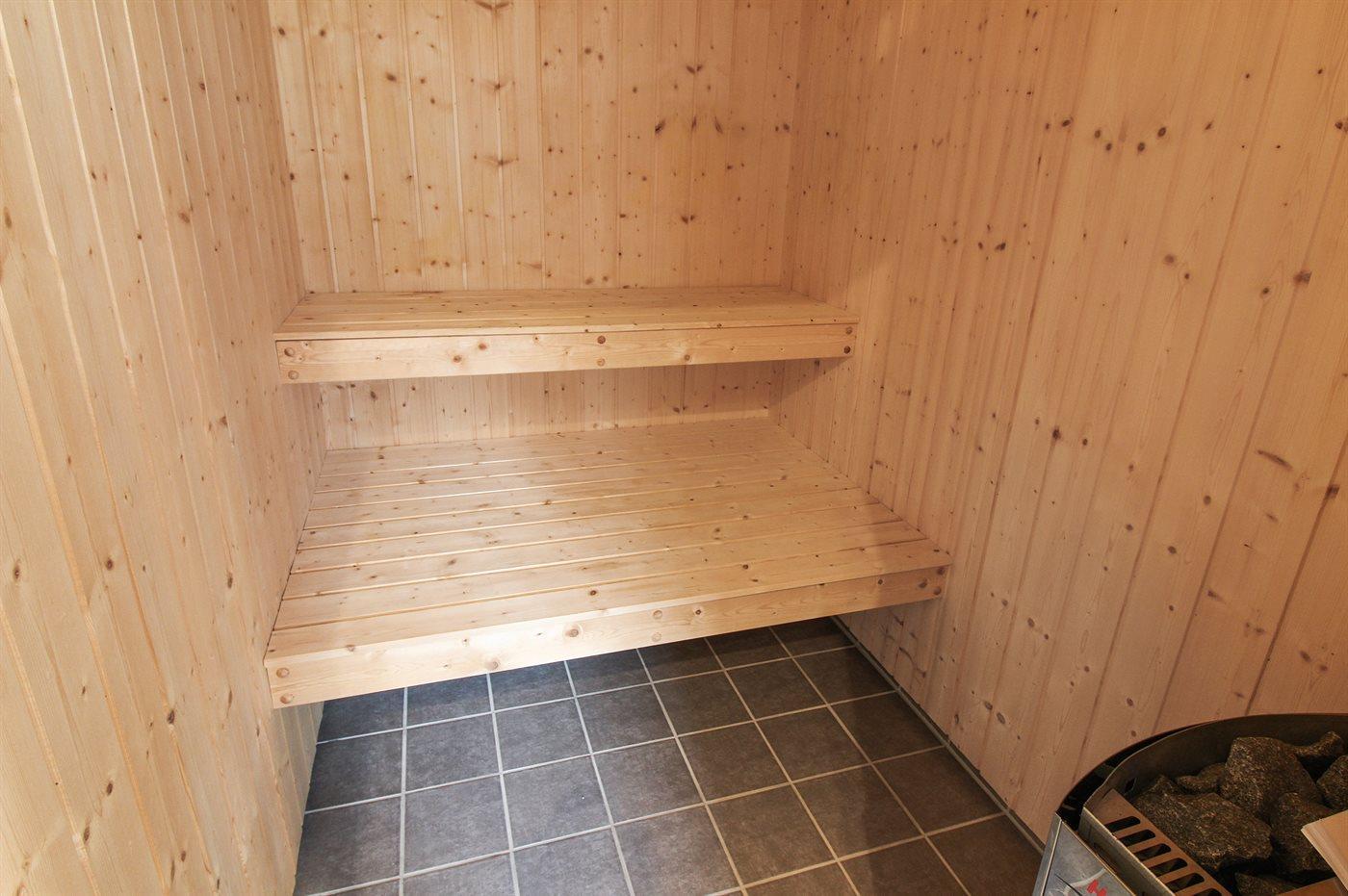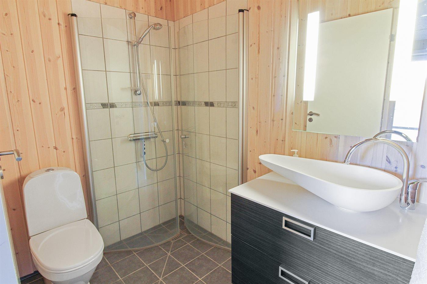 Der er 2 badeværelser med bruseniche og 2 toiletter I saunaen er der mulighed for afslapning.