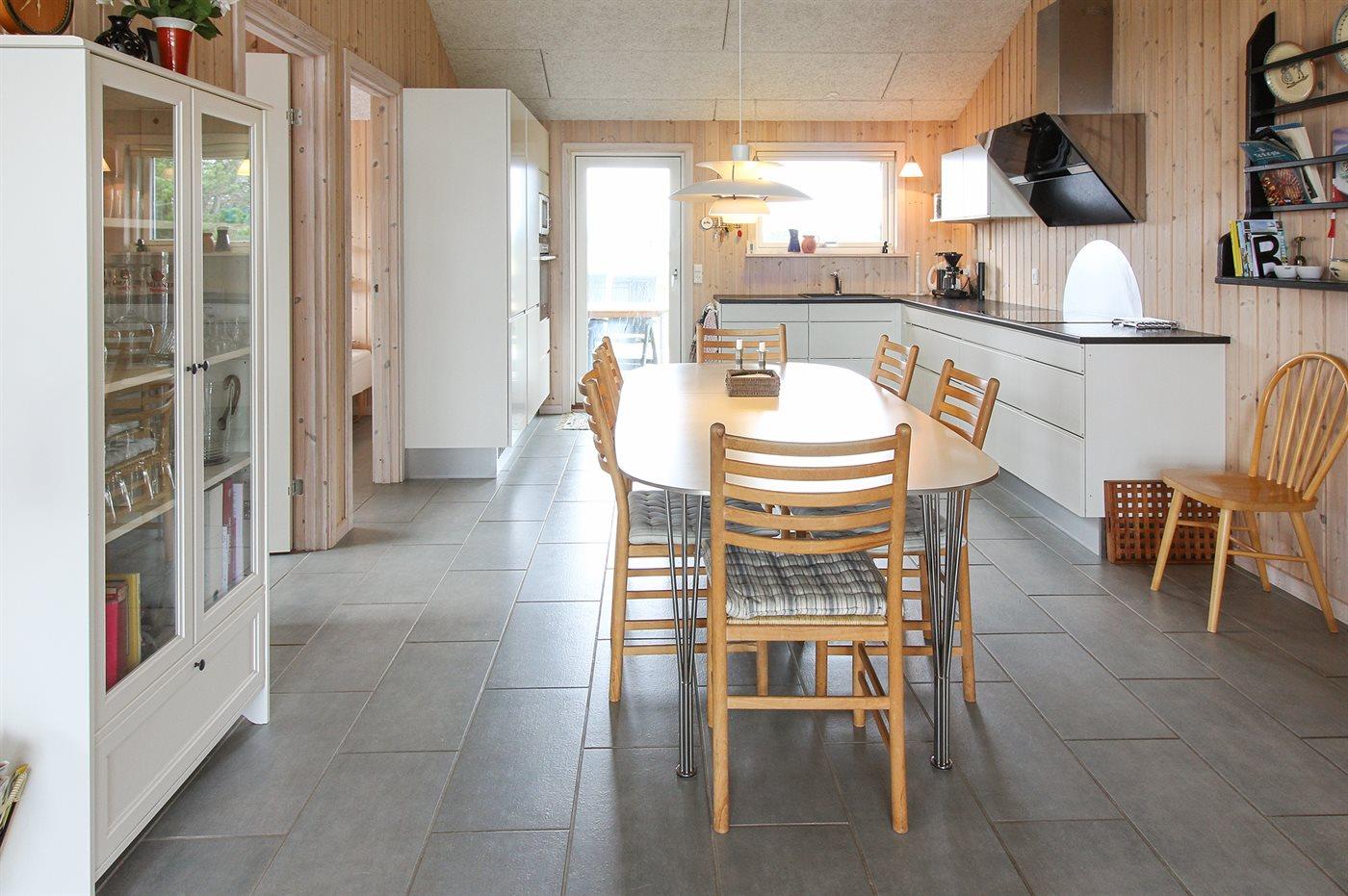 Køkkenet er udstyret med 1 køleskab. Der er 4 induktionskogeplader, varmluftovn, mikrobølgeovn samt opvaskemaskine.