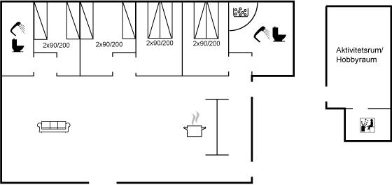 Der er i alt 4 soveværelser. Sovepladserne fordeler sig på: 4 sovepladser i dobbeltsenge. 4 sovepladser i enkeltsenge. Derudover er der 1 stk. barneseng.