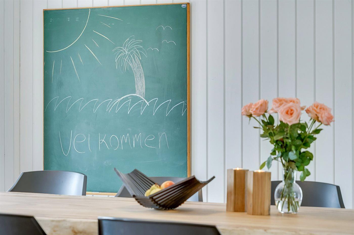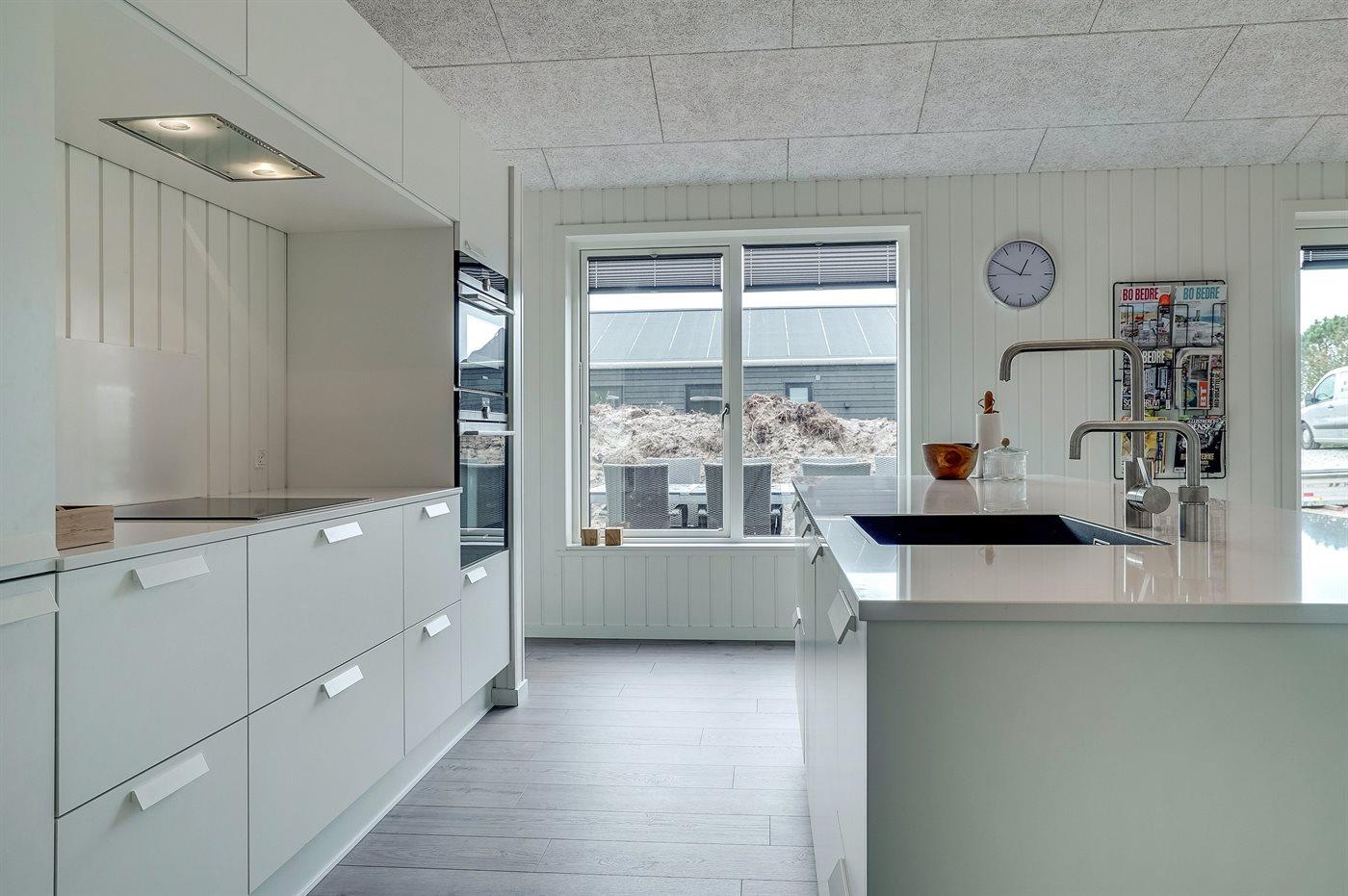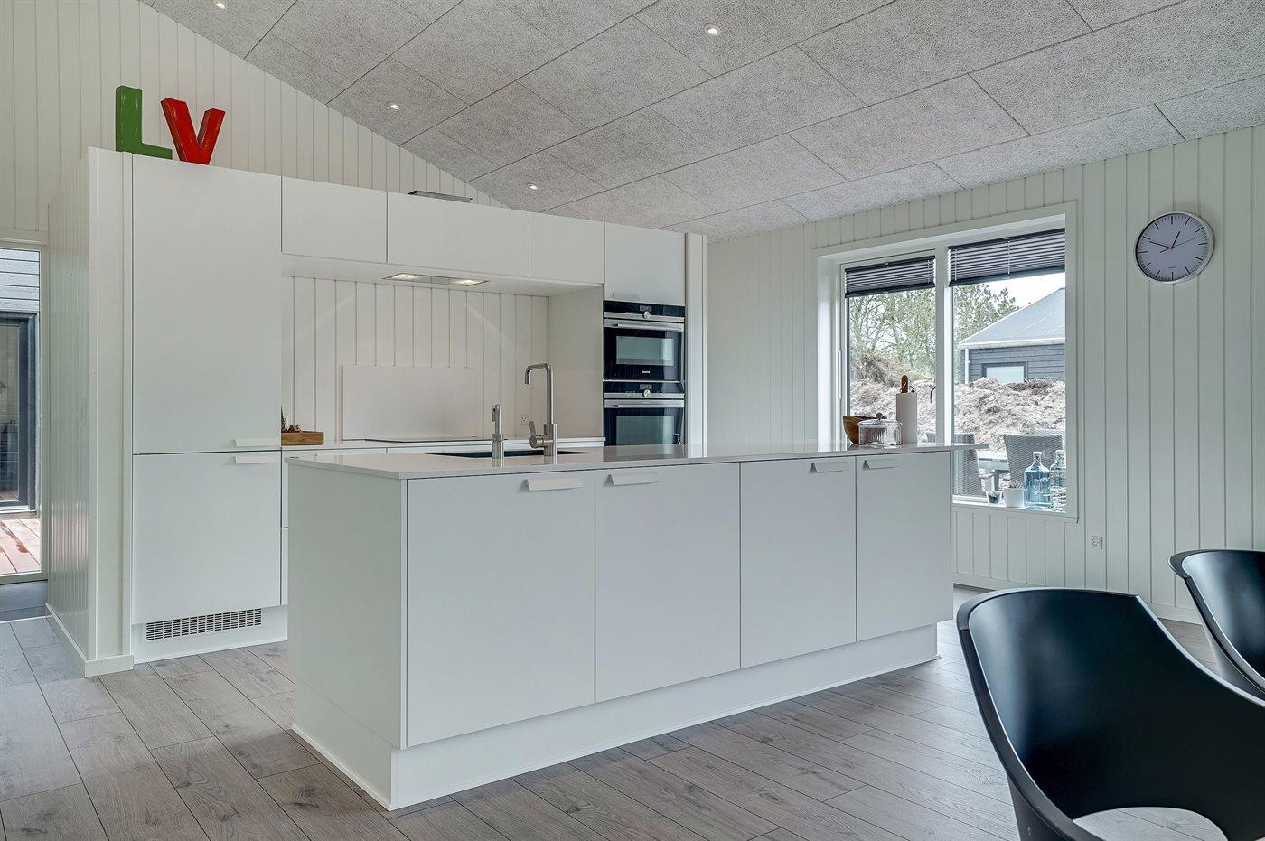 Køkkenet er udstyret med 1 køleskab. Der er 4 keramiske kogeplader, Quooker, varmluftovn, mikrobølgeovn samt opvaskemaskine.