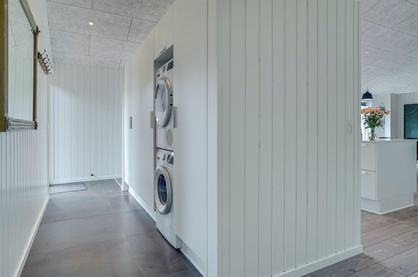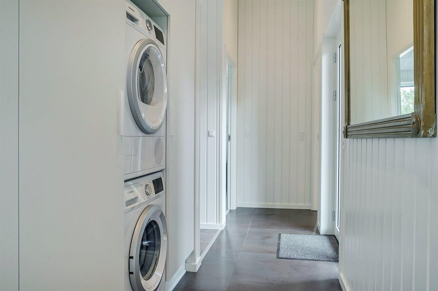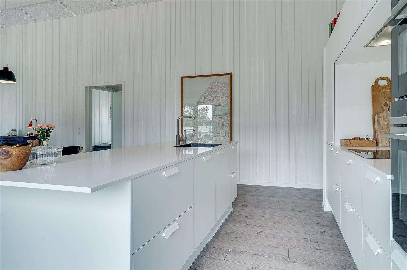 Køkkenet er udstyret med 1 køleskab. Der er 4 keramiske kogeplader, Quooker, varmluftovn, mikrobølgeovn samt opvaskemaskine.