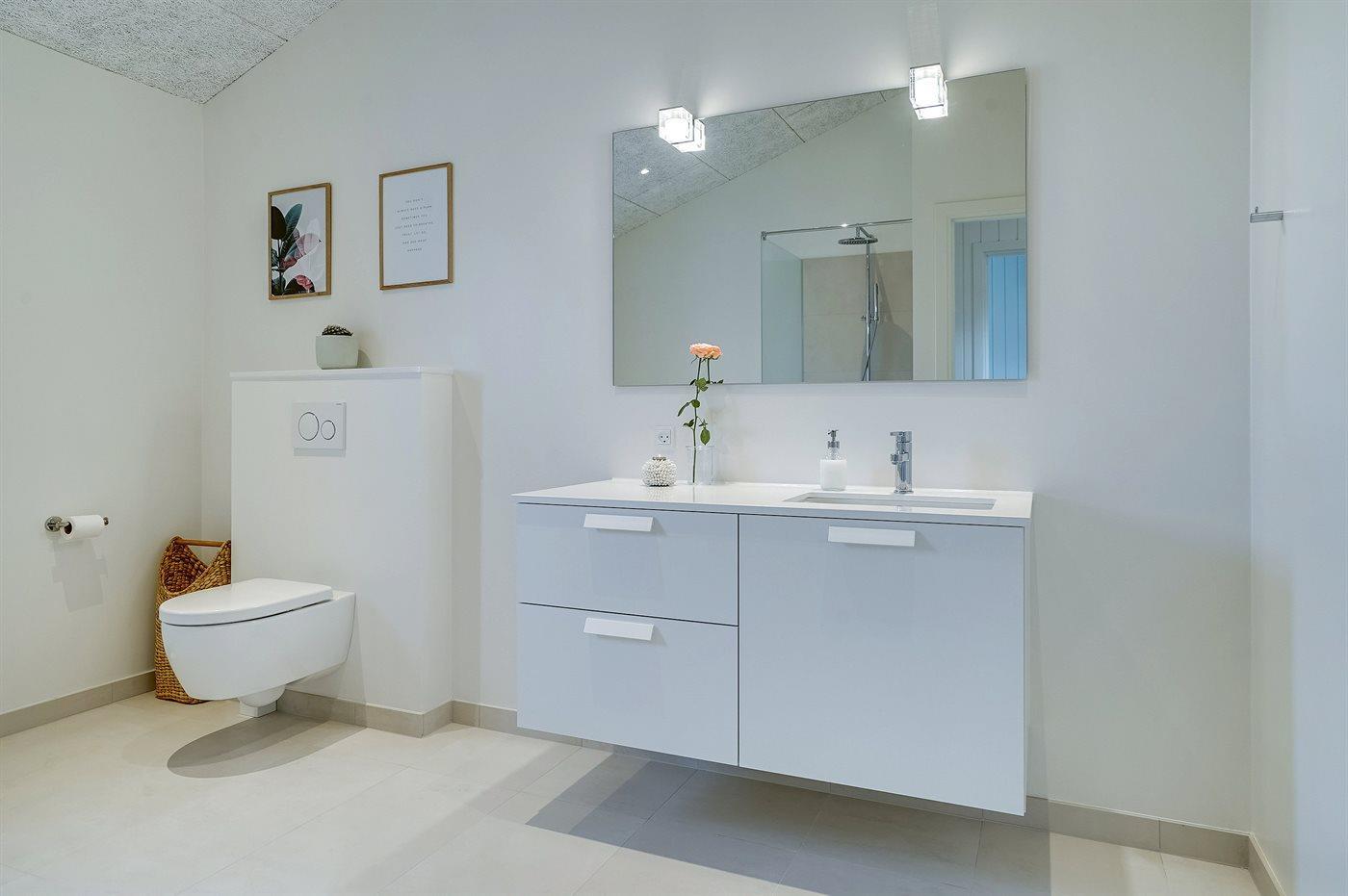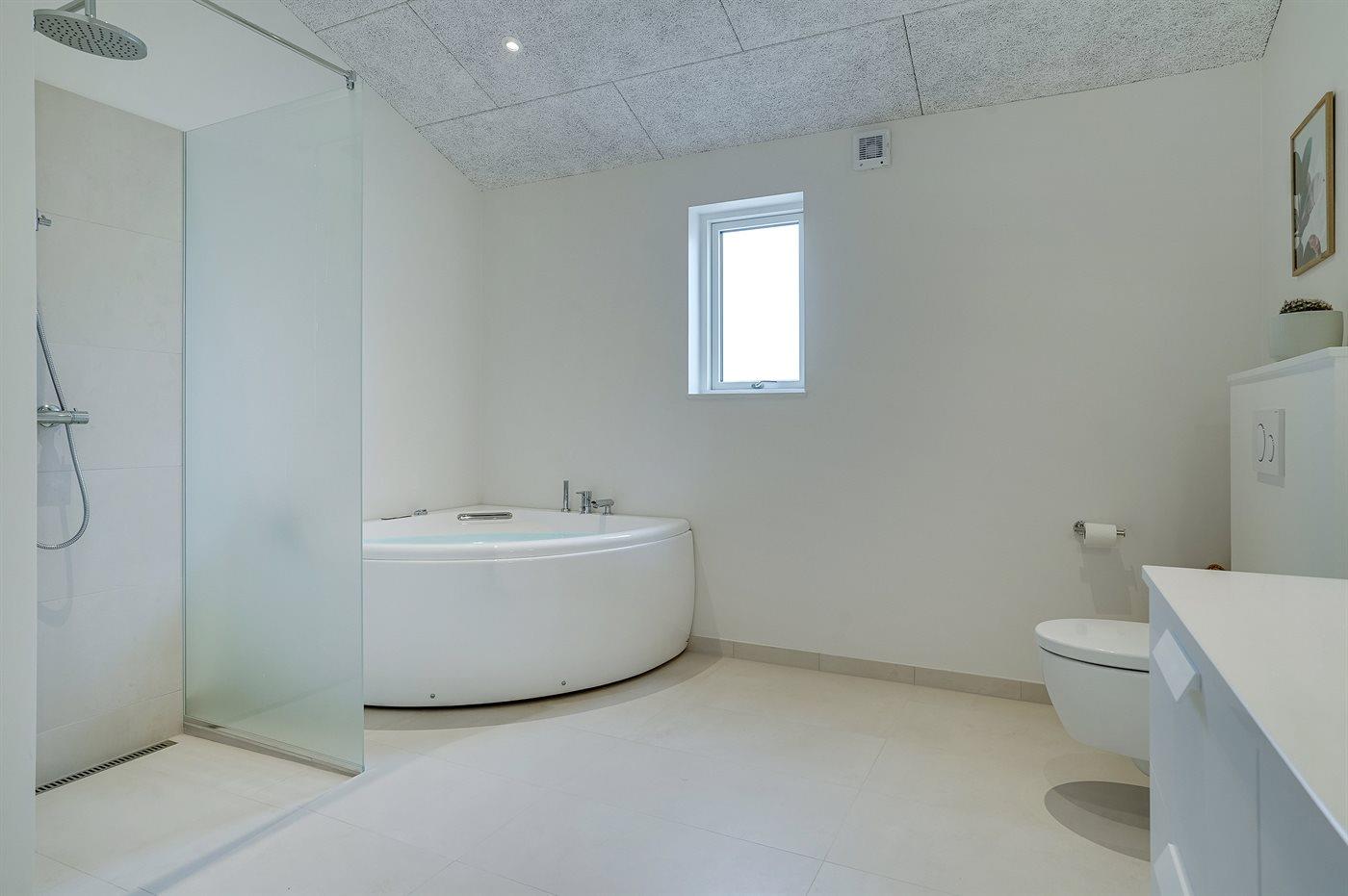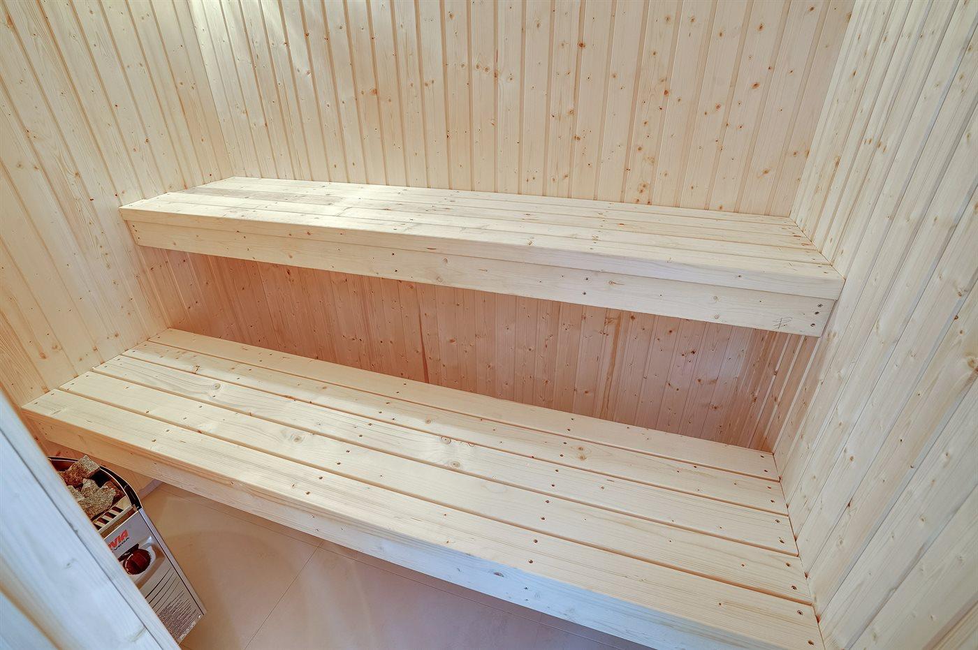 Der er 2 badeværelser med bruseniche og 2 toiletter. Der er gulvvarme på 2 badeværelser. I saunaen er der mulighed for afslapning.