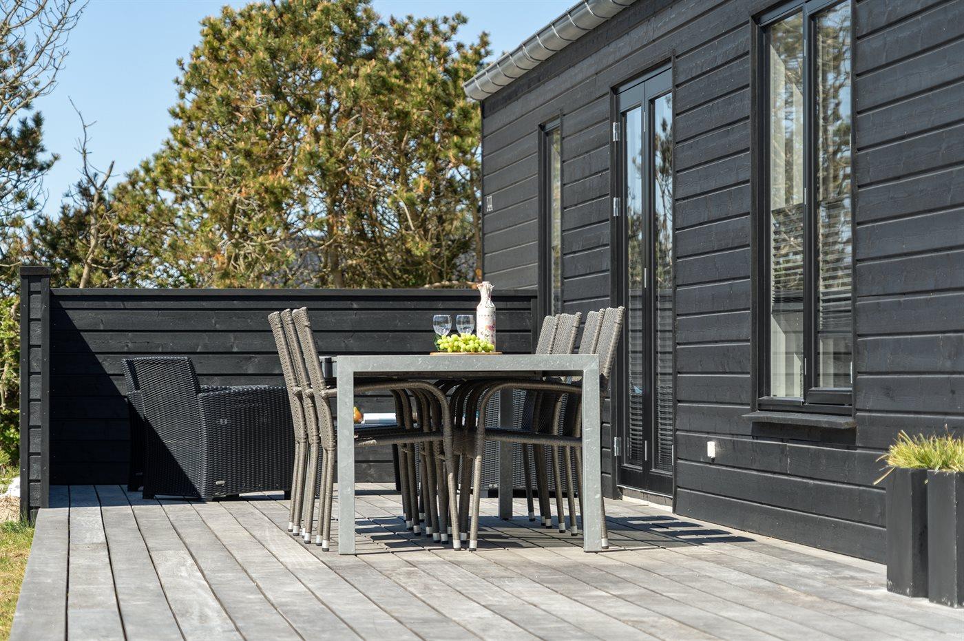 Ferieboligen er beliggende på en 1202 m² stor klitgrund. Der er 650 m til havet. Nærmeste forretning er beliggende i en afstand af 500 m. Til ferieboligen hører 80 m² terrasseareal. Desuden er der 14 m² overdækket terrasse. Grill til rådighed. Parkering ved ferieboligen.