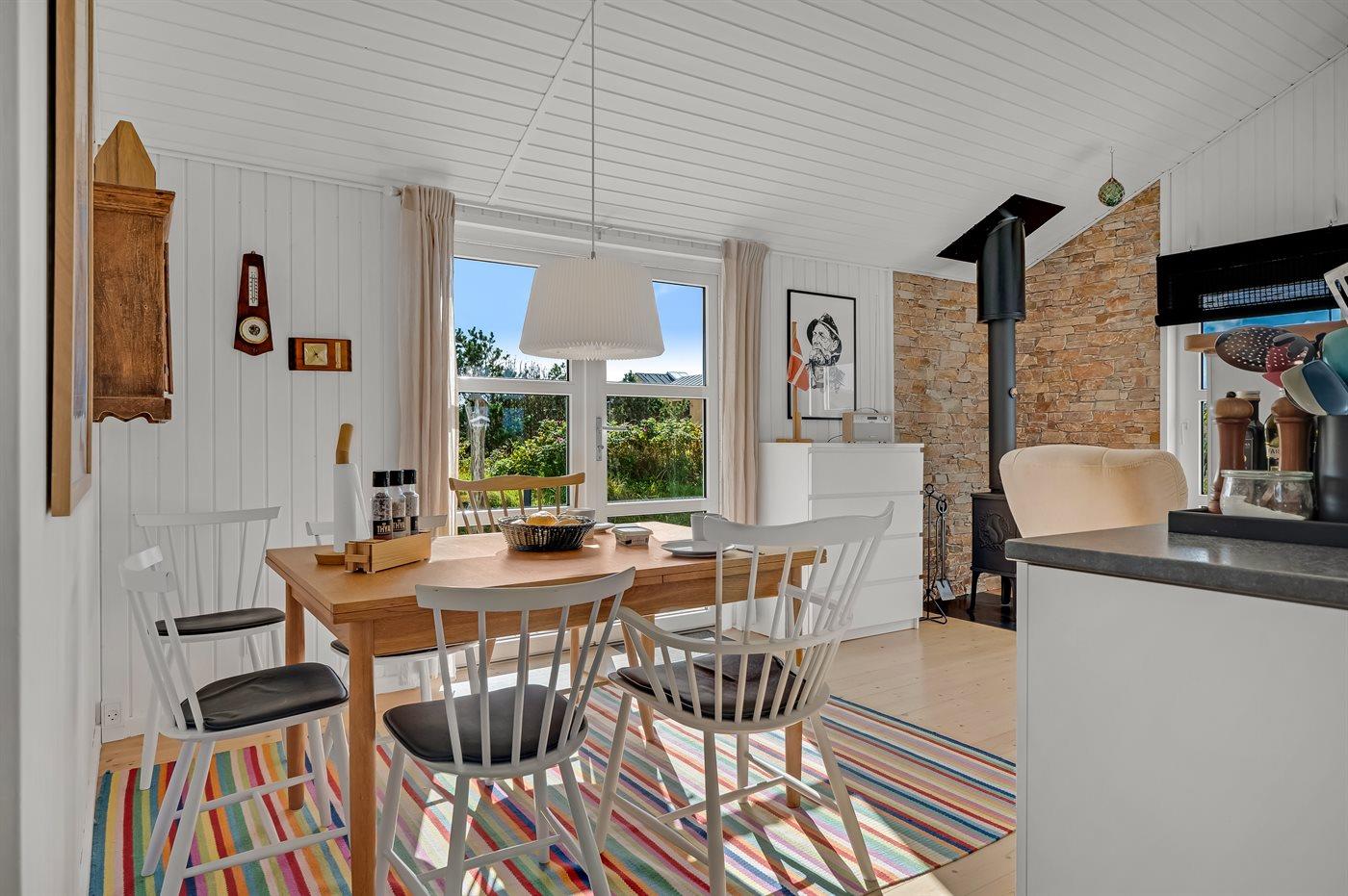 Hyggeligt sommerhus nær Klitmøllers badestrand med brændeovn og trådløst internet.