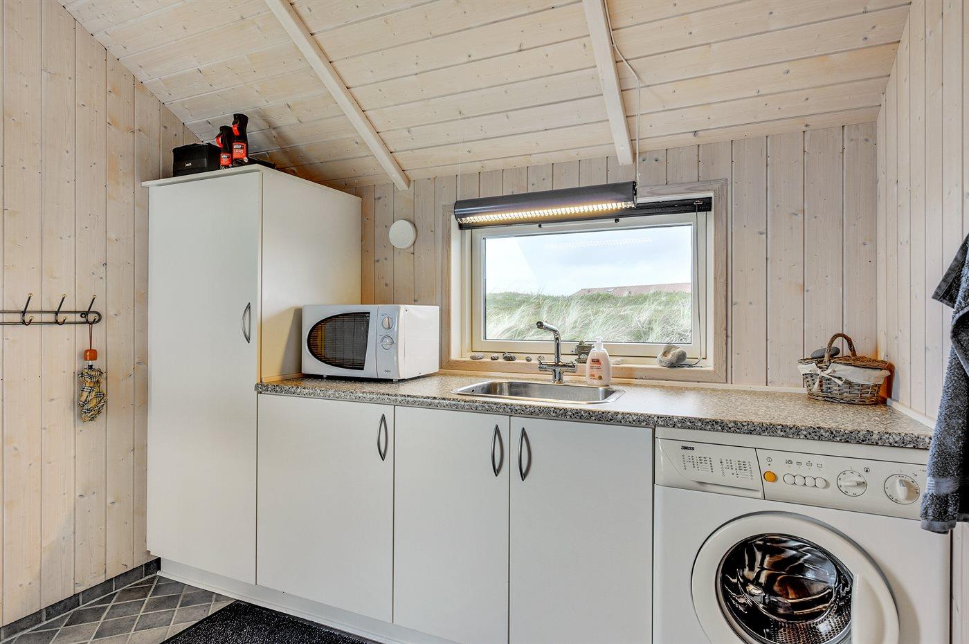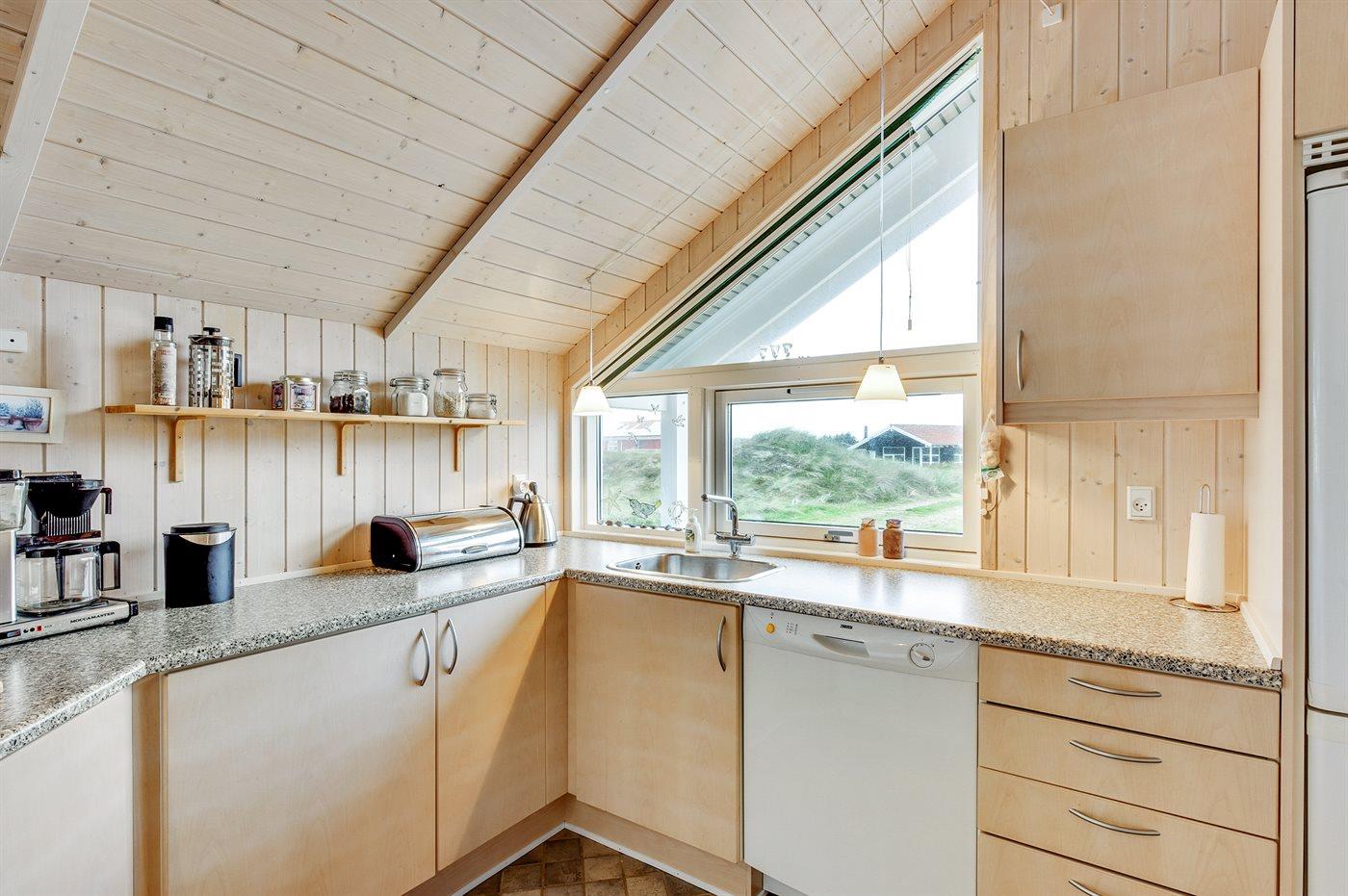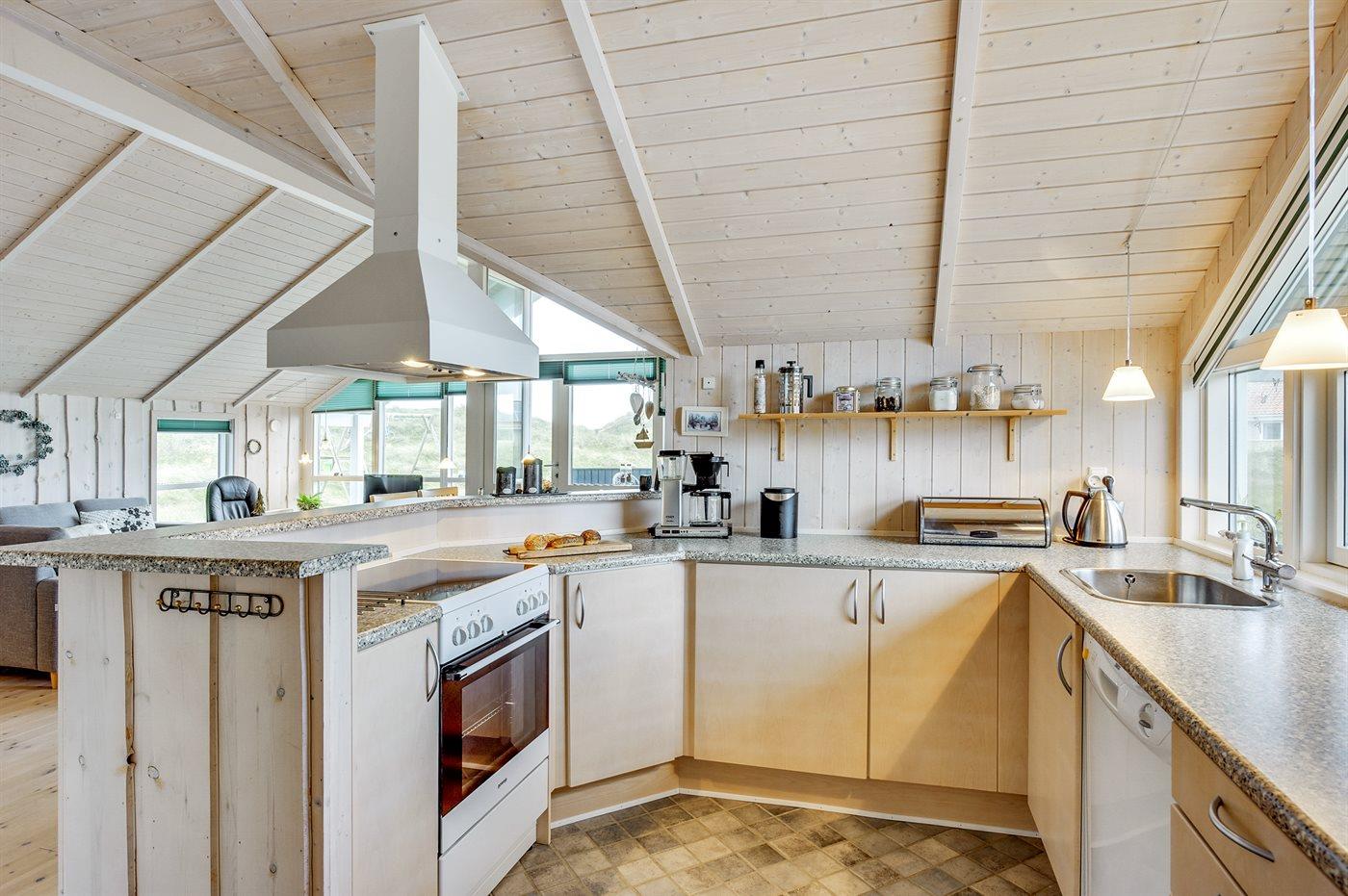 Køkkenet er udstyret med 1 køleskab. Der er 4 keramiske kogeplader, varmluftovn, mikrobølgeovn samt opvaskemaskine.