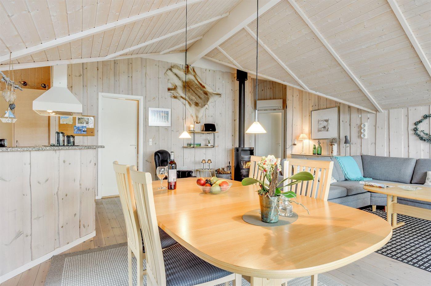 Sommerhuset egner sig til 6 personer. Ferieboligen er på 93 m² og er bygget i 2002. Det er tilladt at medbringe 1 husdyr. Ferieboligen er udstyret med energibesparende varmepumpe. Der er gulvvarme i alle klinkegulve. Ferieboligen har vaskemaskine. Frysekapacitet på 65 liter. Der er desuden brændeovn. Til de små er der 1 stk. barnestol.