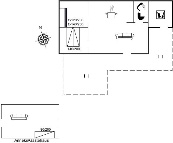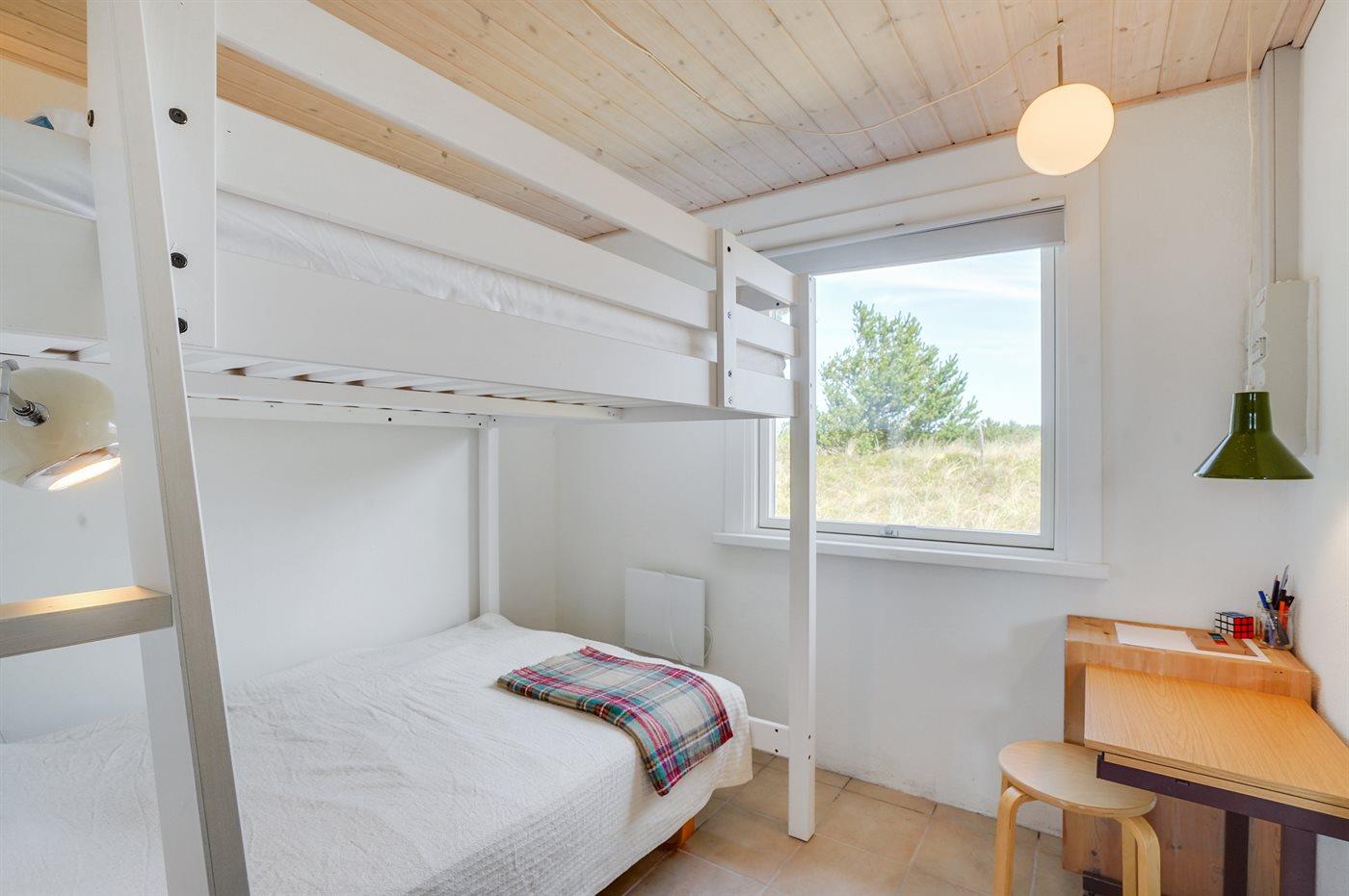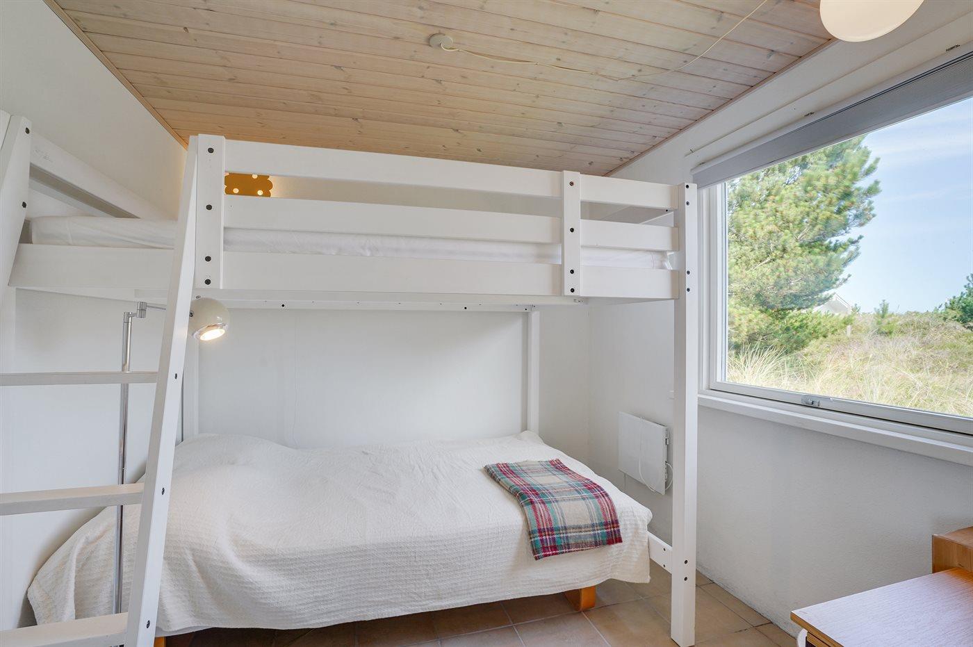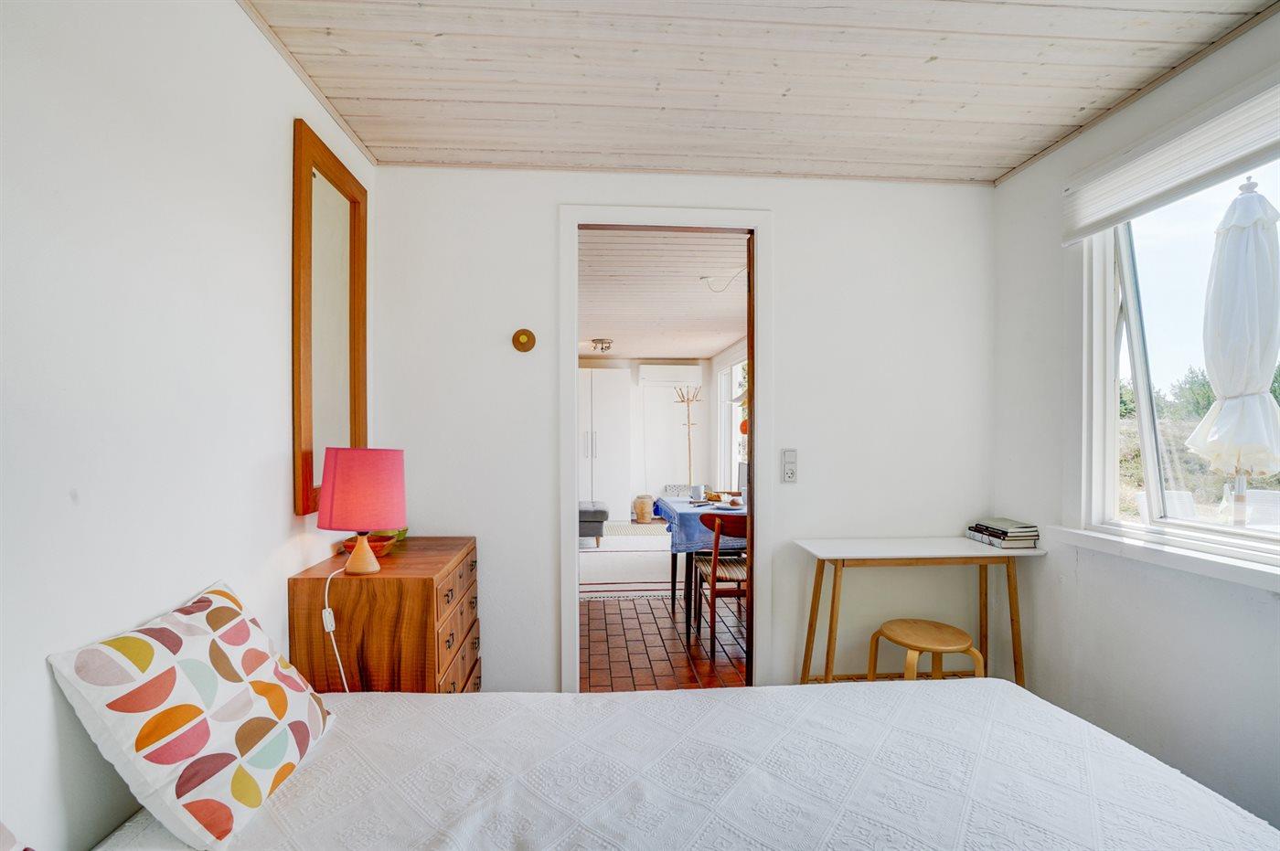 Der er i alt 2 soveværelser i ferieboligen samt 1 soveplads i anneks. Sovepladserne fordeler sig på: 2 sovepladser i dobbeltseng. 2 sovepladser i rummelig køjeseng. 1-2 sovepladser i anneks.