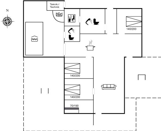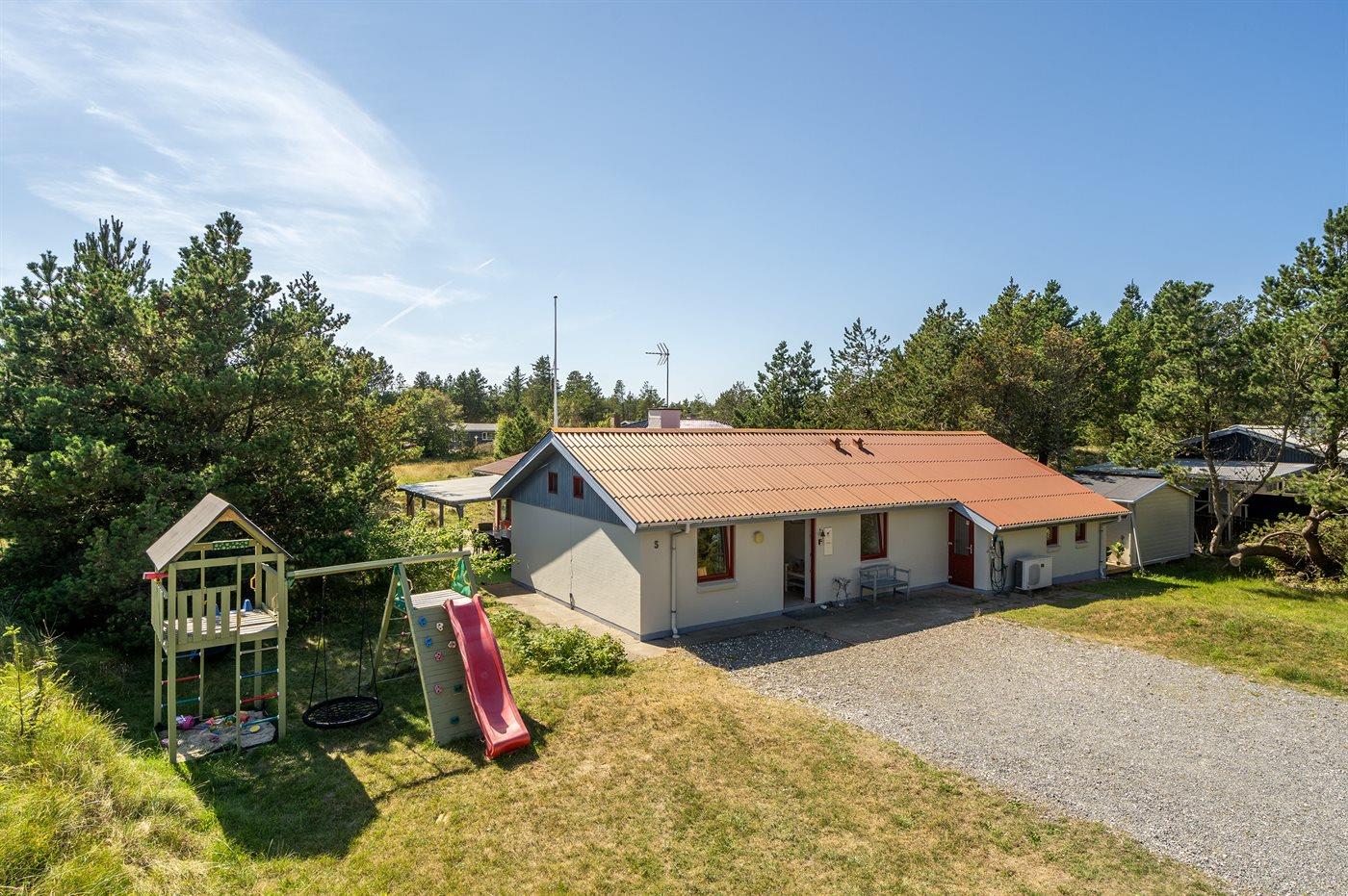 Dette sommerhus med swimmingpool ligger på en stor og delvist beplantet naturgrund i det populære ferieområde Klitmøller. Rundt om huset er der en ca. 40 m2 stor terrasse, som gør det muligt at nyde solen hele dagen igennem. Indvendigt er huset meget lyst og venligt indrettet og der findes hvidmalede vægge og lyse lofter. I den dejlige, sydvendte stue finder I en brændeovn til kølige stunder samt udgang til den store terrasse. I den pæne køkkenafdeling findes alt i tekniske hjælpemidler. Samlingspunktet i huset vil naturligvis være den store poolafdeling med swimmingpool, 2-pers. spa og adgang til sauna. Poolen opvarmes med en energivenlig varmepumpe og der er desuden gulvvarme i poolafdelingen. Sommerhusets størrelse og indretning gør det velegnet til flere familier. Der er kun 4 km til en 18-hullers golfbane.