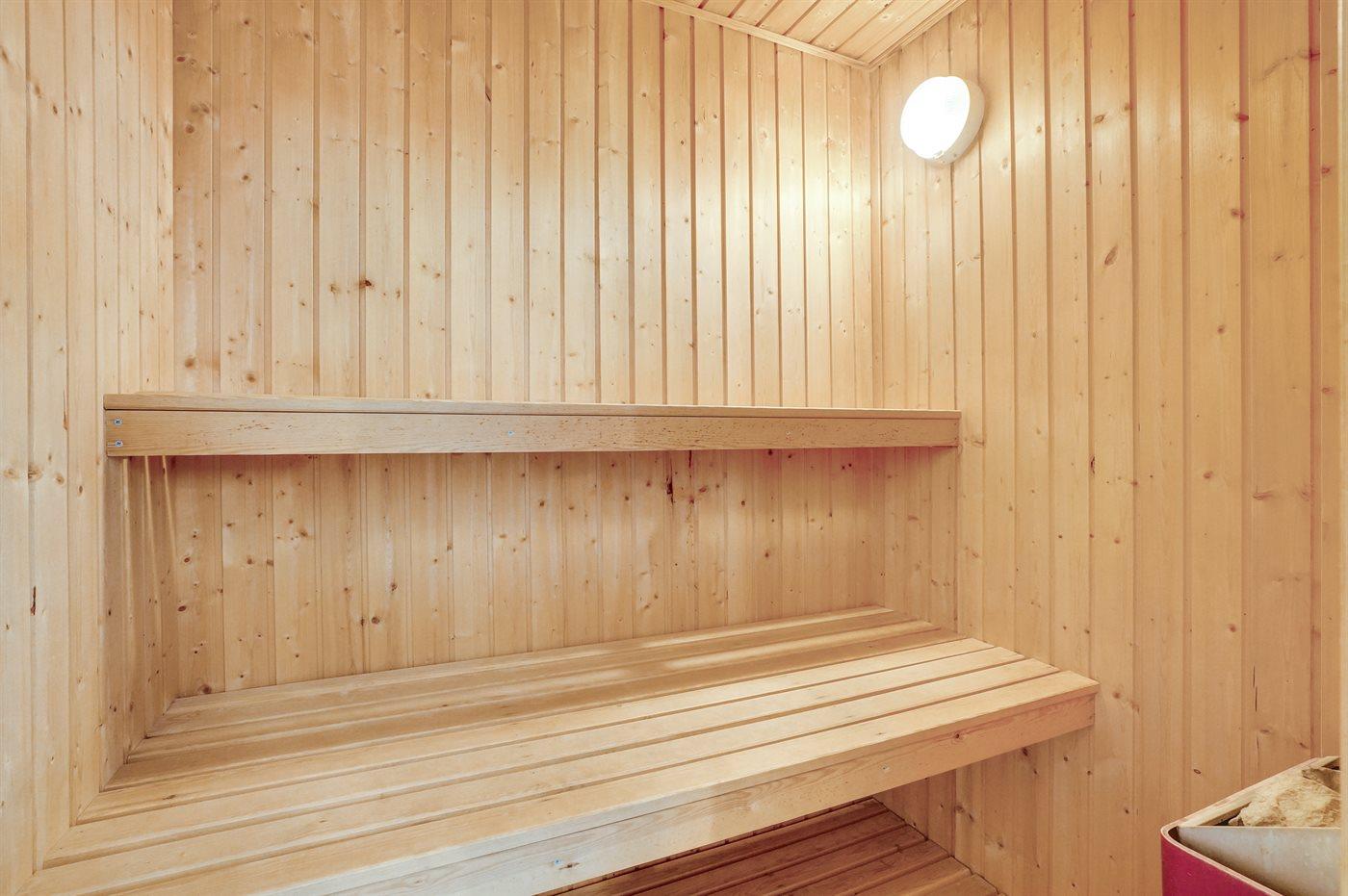 Der er 2 badeværelser med bruseniche og 2 toiletter. Der er gulvvarme på 2 badeværelser. I saunaen er der mulighed for afslapning.