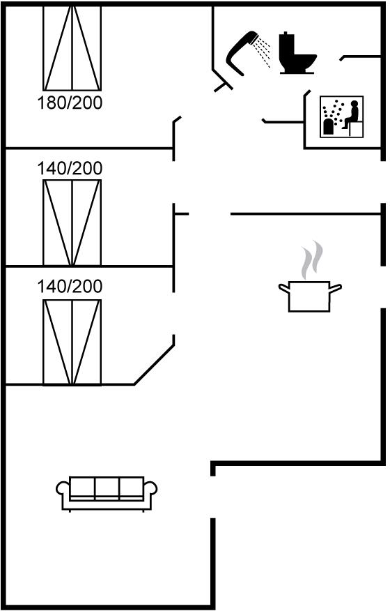 Der er i alt 3 soveværelser. Sovepladserne fordeler sig på: 6 sovepladser i dobbeltsenge.