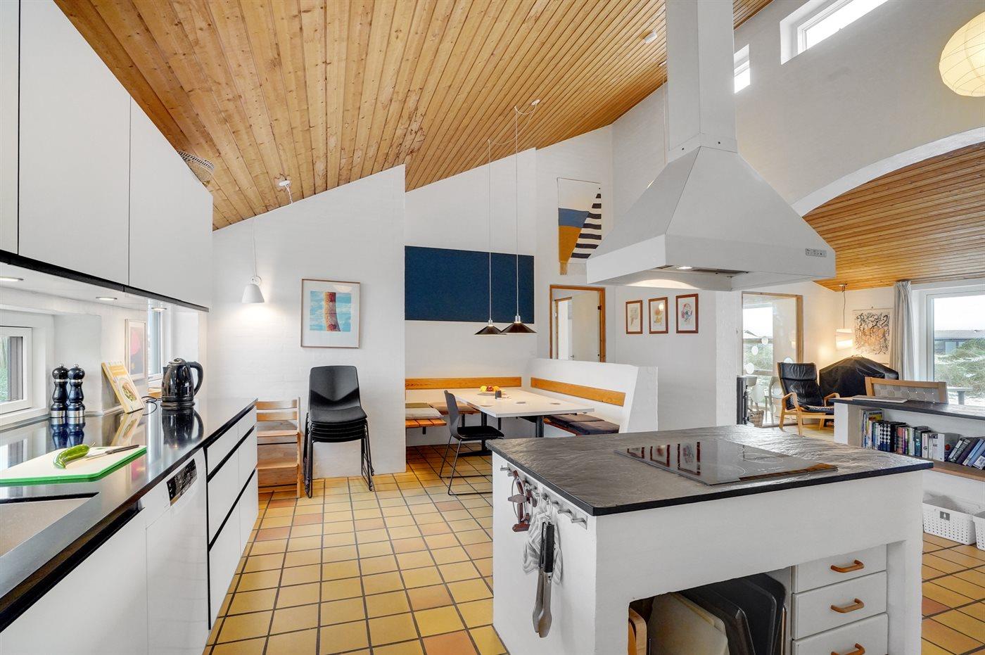 Køkkenet er udstyret med 1 køleskab. Der er 4 induktionskogeplader, varmluftovn, mikrobølgeovn samt opvaskemaskine.