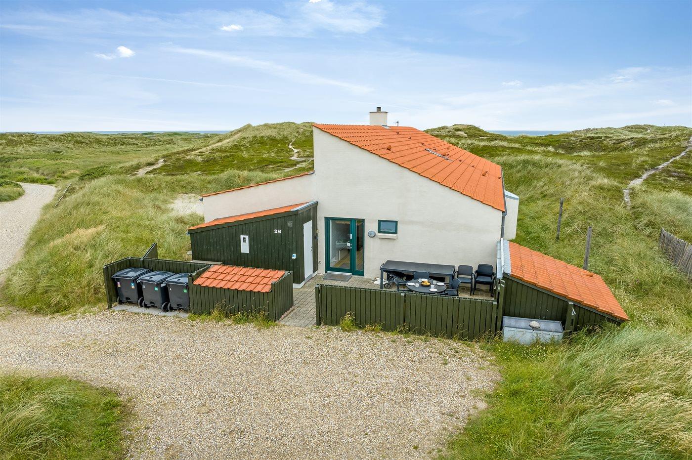 Nyd afslappende timer i det fri enten på den store grund, hvor det er muligt at spille beachvolley på sandarealet ved huset, eller på den sydvendte terrasse, hvor I kan høre Vesterhavets brusen eller betragte stjernehimlen en dejlig sommeraften. Fra klitterne er der udsigt over havet.