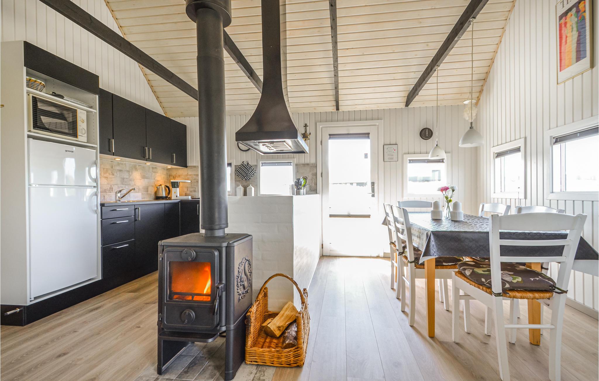Velkommen til et yderst charmerende sommerhus, som er placeret i første række af klitterne, så I bor i hørbar afstand fra havets brusen. Her kan I se frem til en bolig, som er hjemlig og funktionelt indrettet med alt, hvad I skal bruge til nogle dejlige feriedage. I stuen kan I sætte en film på om aftenen eller tilbringe hyggelige timer med at spille brætspil. På de kølige dage er det skønt at vende hjem til ild i brændeovnen efter en lang forblæst gåtur ved kysten.