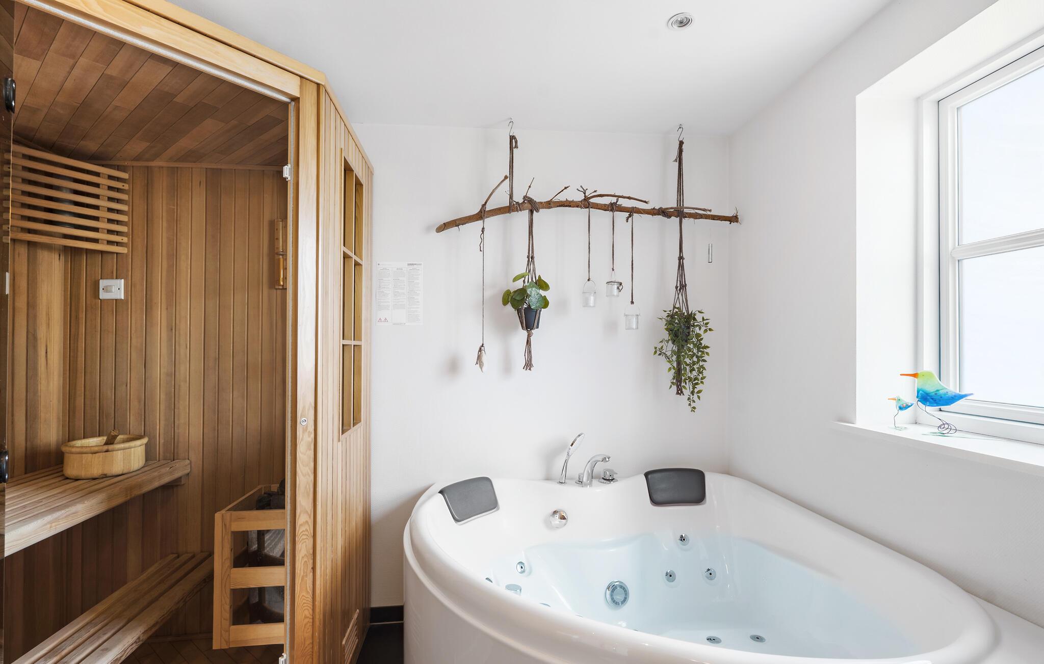 Der er lagt op til en forrygende ferie i denne smukke villa med sauna, spabad og skønne terrasseområder.