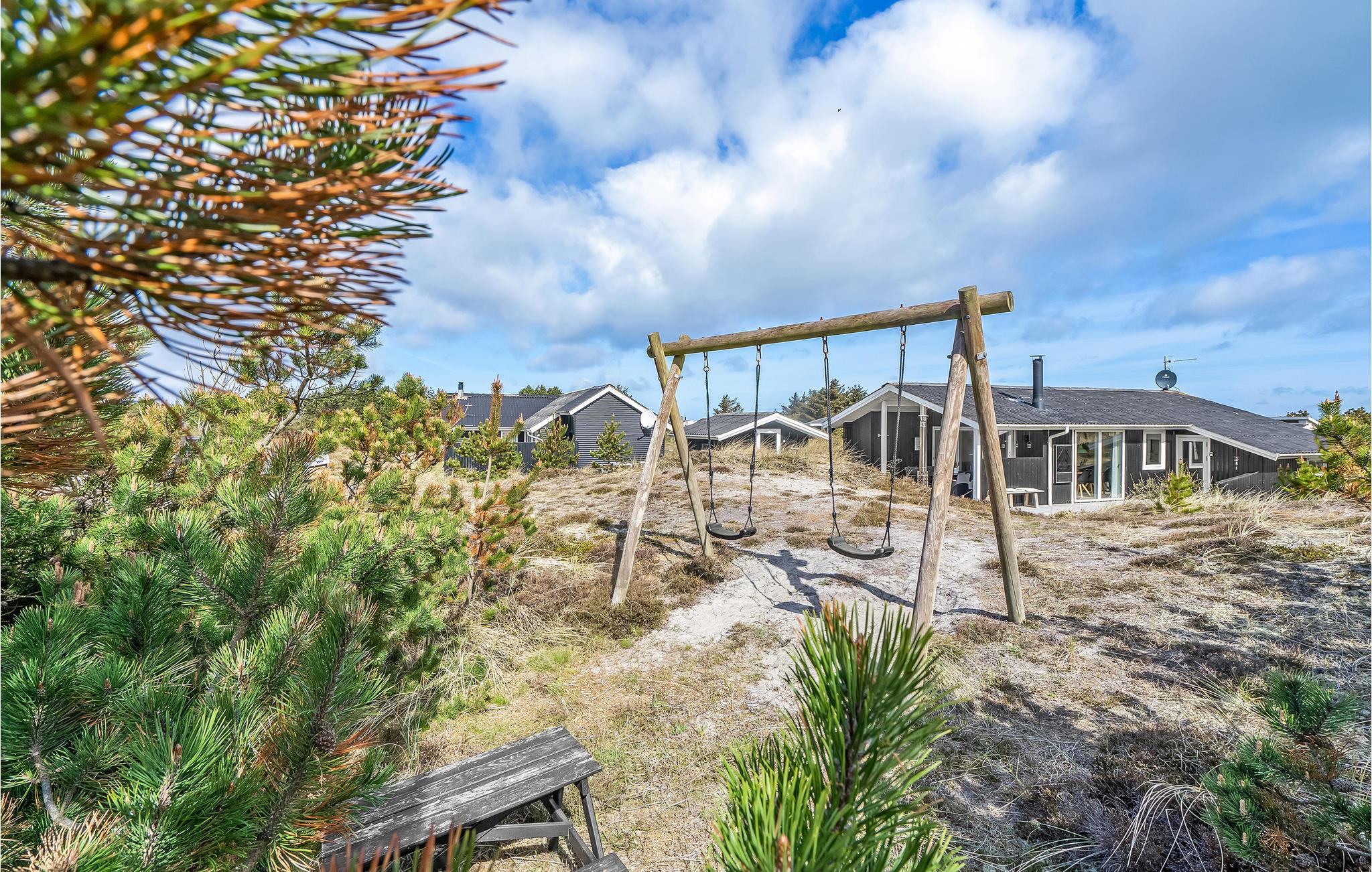 Bo i dette pænt renoverede feriehus, beliggende på en naturskøn klitgrund. Feriehuset ligger lidt nede bag klitten således, at I uforstyrret kan nyde den stille og rolige atmosfære på den overdækkede terrasse, mens I ånder den friske havluft. Tag til byen Thisted, hvor der er et rigt kulturliv med musik og forskellige opvisninger, eller I kan tage i biografen, hvis vejret skulle drille en af dagene. Områdets store attraktion er det store Vesterhav, hvis salte bølger altid brydes mod den brede strand, uanset hvad der ellers sker. Her kan I se de små fiskerbåde blive trukket op på land og købe frisk fisk over rælingen fra fiskeren, der selv har fanget den.