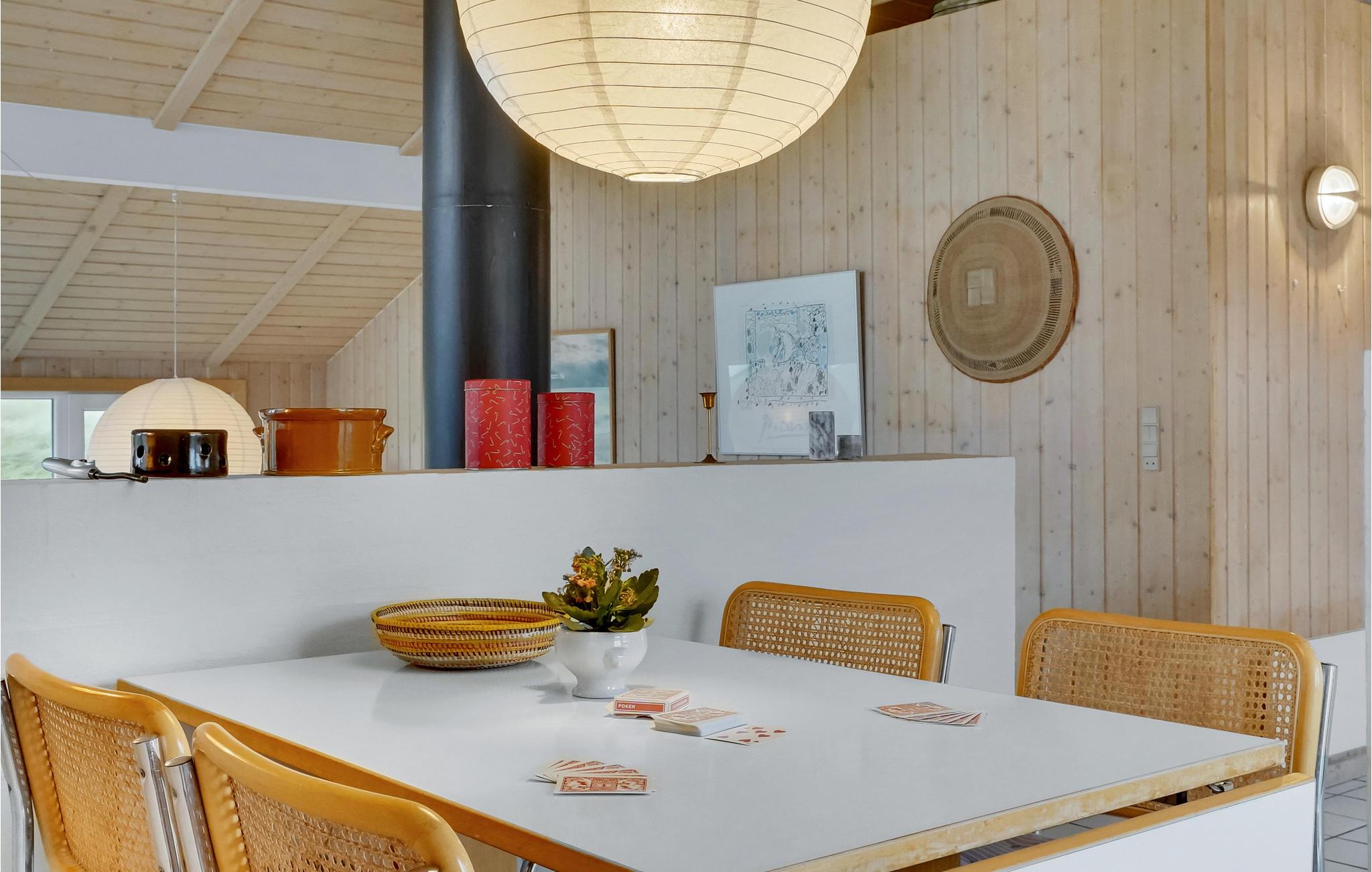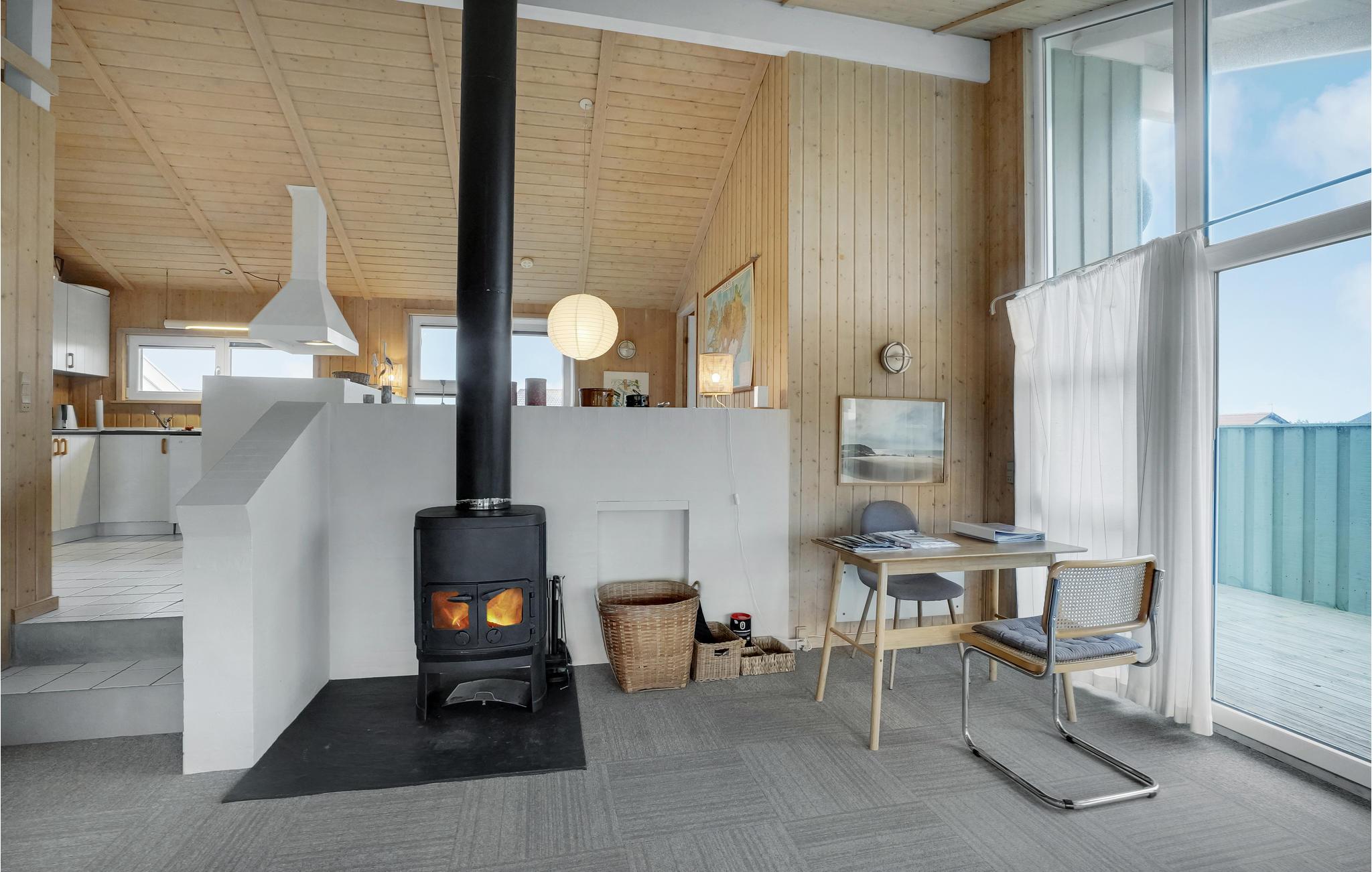 Virkelig godt og velbeliggende sommerhus i første klitrække på kysten. Det er lyst og moderne indrettet med pæne møbler og et praktisk køkken med god og rummelig spiseplads. Udendørs kan I hygge jer med en kold forfriskning eller en god bog på den dejlige terrasse. I kan tage en frisk dukkert i Vesterhavet fra stranden, som ligger 175 m fra huset. Området kaldes også Cold Hawaii på grund af de helt unikke muligheder til wind- og kitsurfere, der kommer fra hele verden for at prøve kræfter med de store bølger. Ligesom Nationalpark Thy har en helt uforlignelig smuk natur, som det er oplagt at opleve på en lang gåtur - hvor I også kan se store flokke af kronhjorte. Huset ligger kun 200 m fra fiskemulighed: 200 m, der er 700 m til restaurant og en km til butikker.