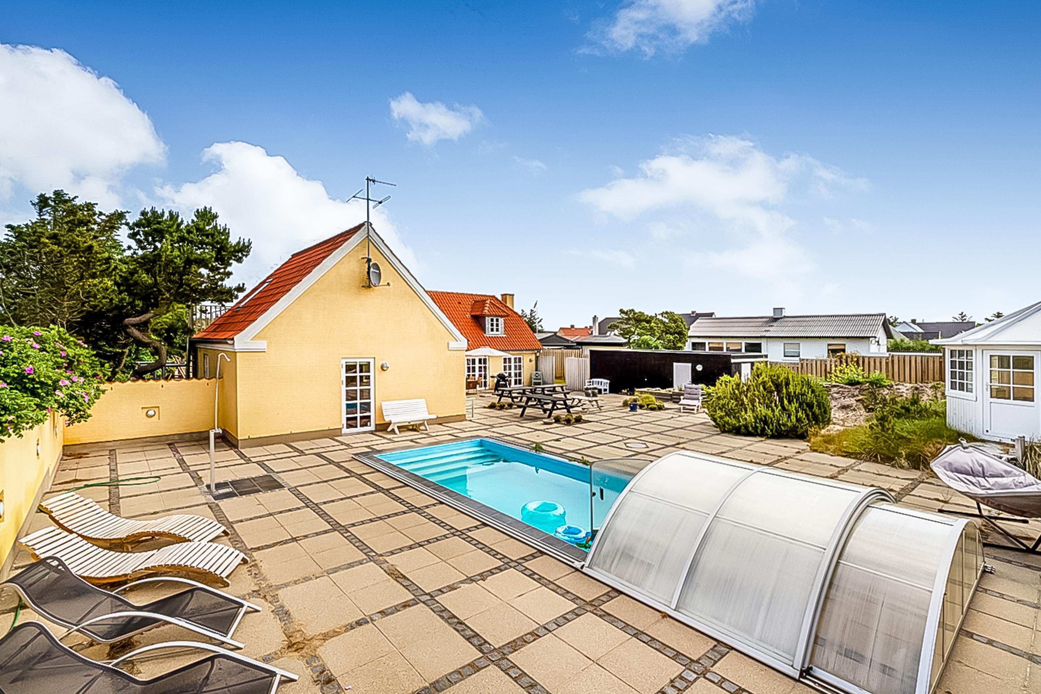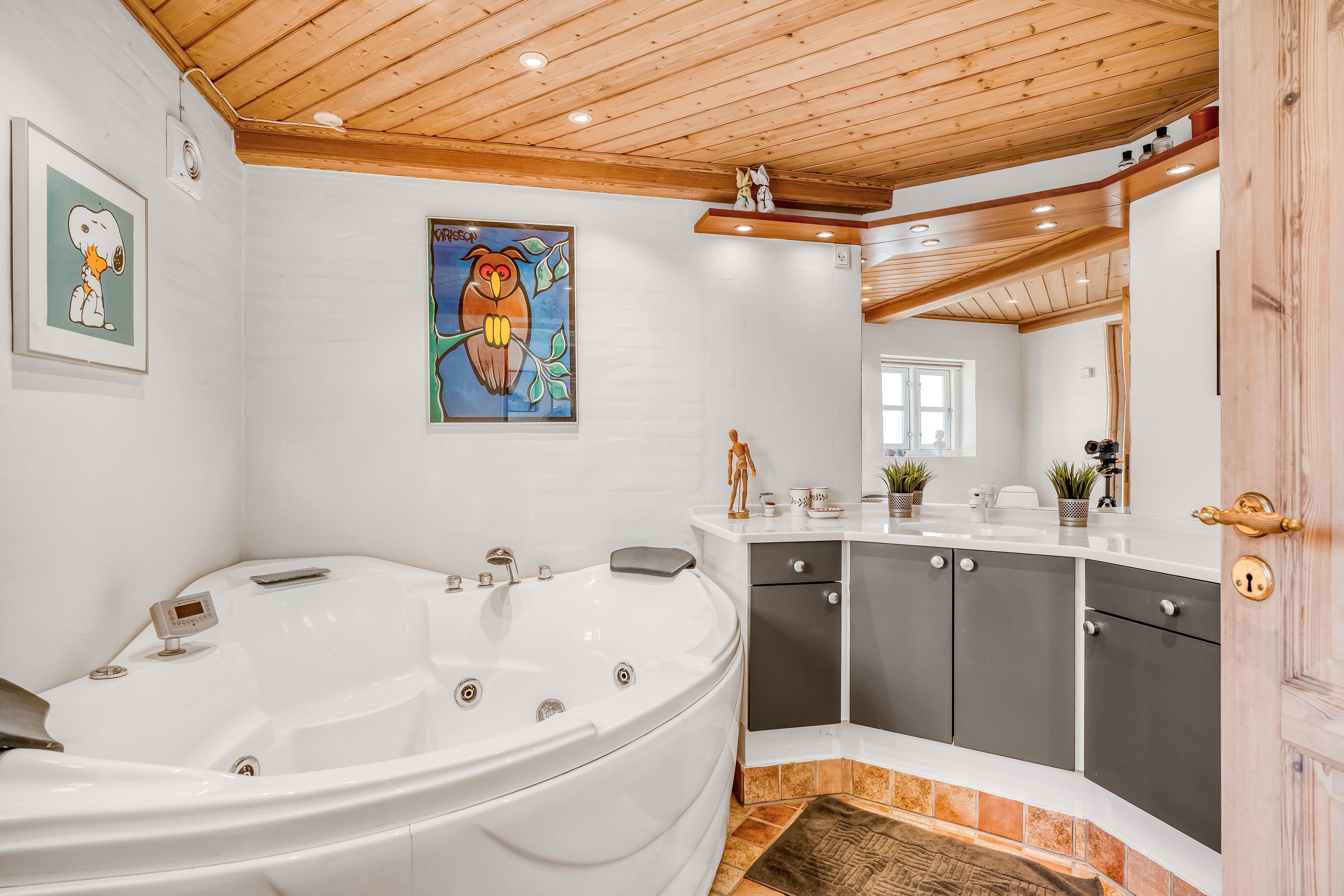 Faciliteterne i huset er imponerende. Der er to moderne badeværelser, hvoraf det ene er udstyret med gulvvarme og bruser, hvilket giver en luksuriøs oplevelse. Udenfor kan du nyde den lukkede terrasse, hvor du kan slappe af med en god bog eller nyde en lækker middag tilberedt på grillen. For dem, der ønsker at tilbringe tid i vandet, er der en pool med modstrømsanlæg. Der er desuden et indendørs spa, hvor op til to personer kan forkæle sig selv med afslapning, samt en sauna.