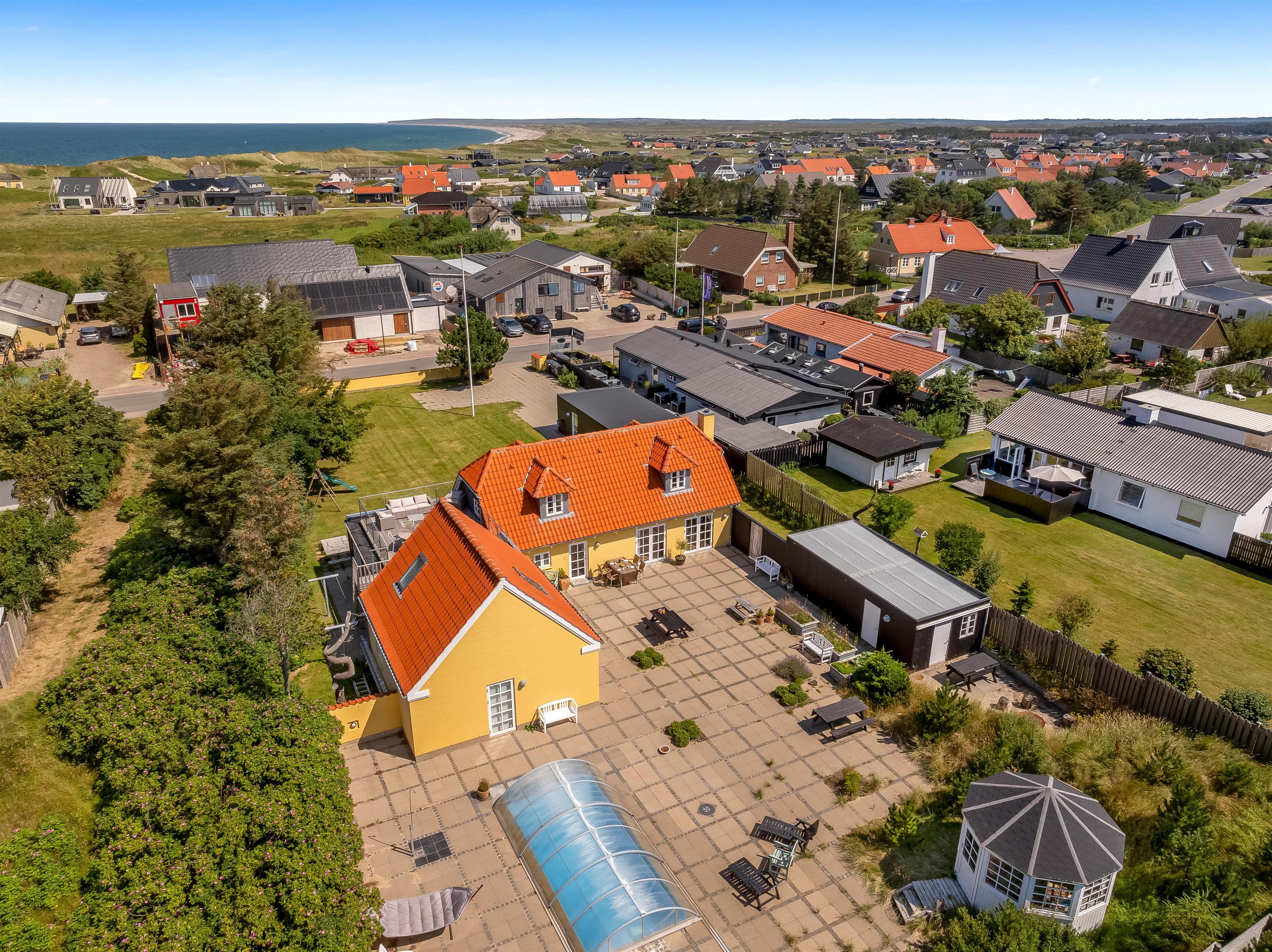 Denne fantastiske feriebolig på Ørhagevej 97 i Klitmøller, rummer alt hvad du behøver, for en uforglemmelig oplevelse med familie eller venner. Beliggende blot 300 meter fra Vesterhavet, er denne moderne perle blevet opført i 1997 og renoveret i 2013, hvilket sikrer en kombination af stil og komfort. Boligen strækker sig over husareal på 240 kvadratmeter og er beliggende på en indhegnet grund på 2000 kvadratmeter, perfekt til både leg og afslapning.