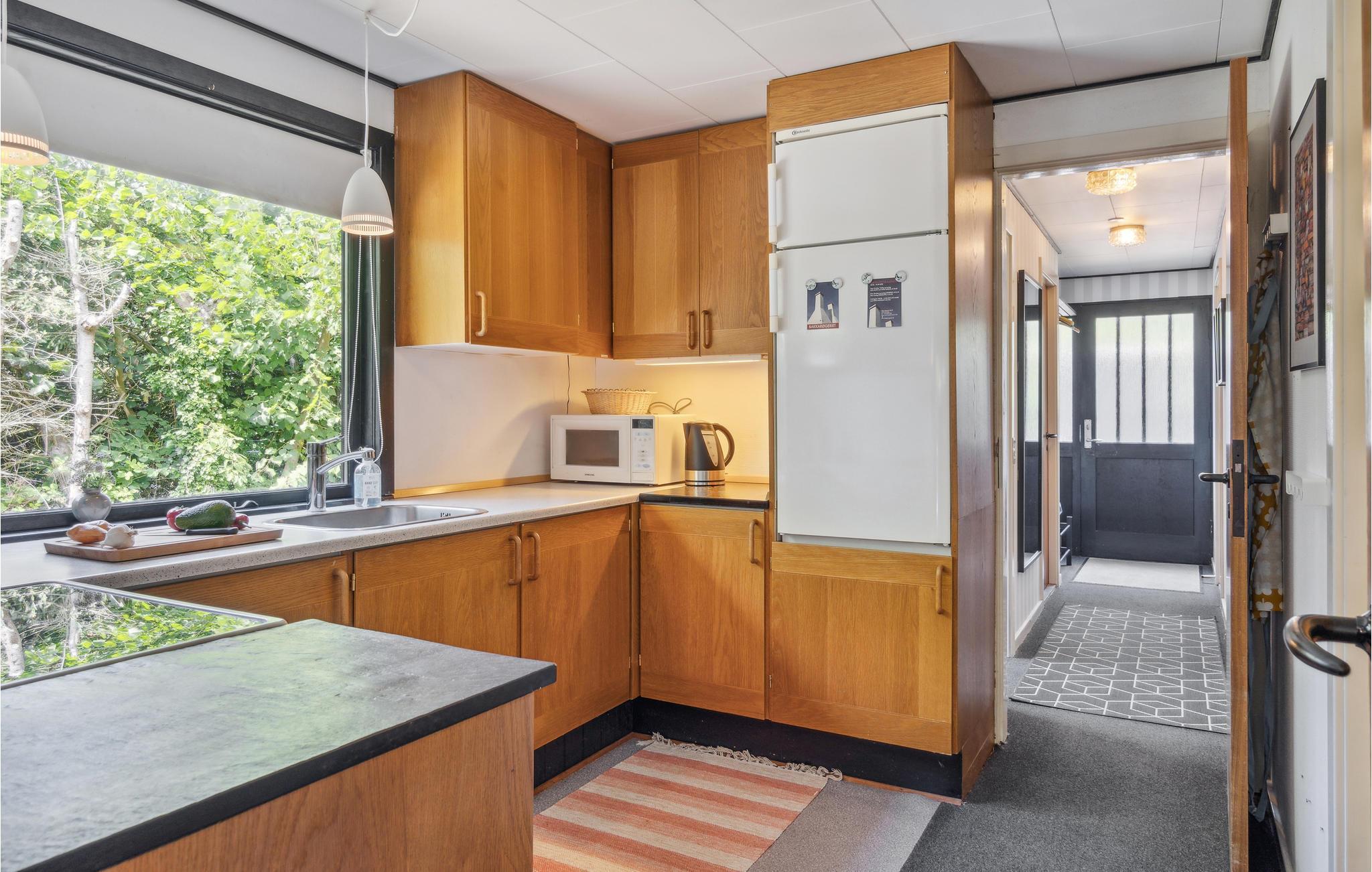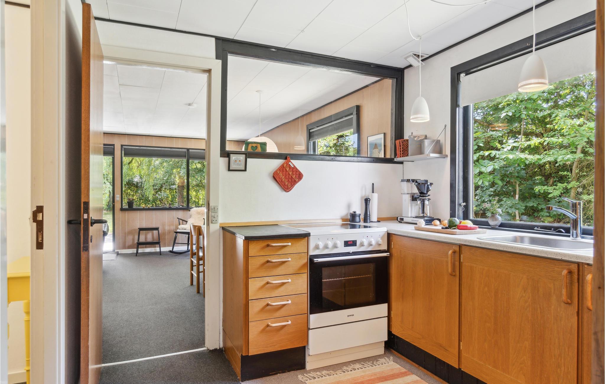 Velkommen til Bornholms vestkyst, hvor I finder dette charmerende sommerhus i naturskønne rammer. Indretningen er i varmen naturfarver og vinduerne lukker lyset og de grønne omgivelser ind i stuen, så her er det nemt at slappe af. Når I vender hjem efter dagens eventyr, kan I samles om spisebordet, sætte jer til rette med brætspil og gode bøger og tænde op i brændeovnen, hvis det er lidt køligt. Haven fungerer som et dejligt uderum, hvor I kan nyde alle de små solskinsstunder og dække op til en lækker sommermiddag om aftenen.