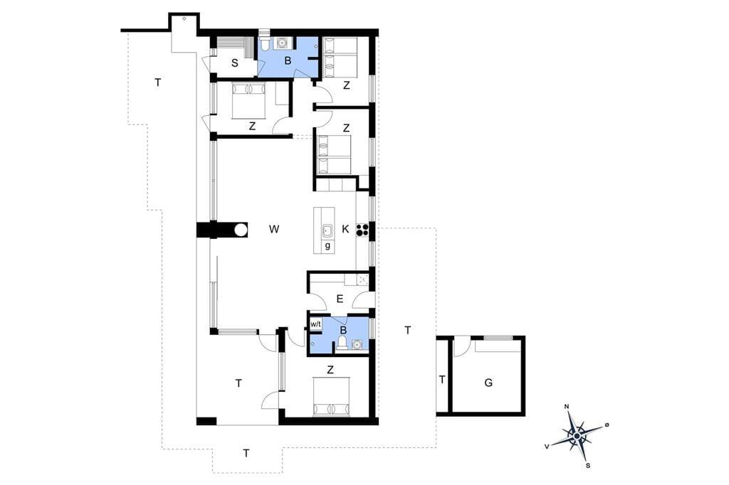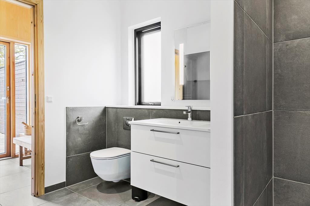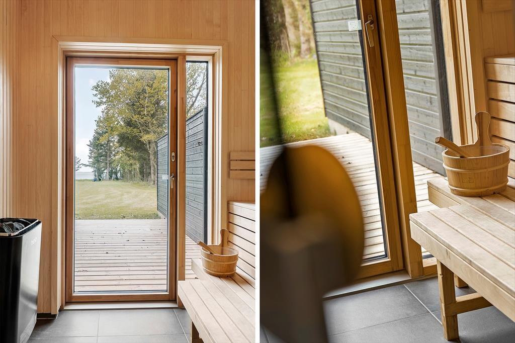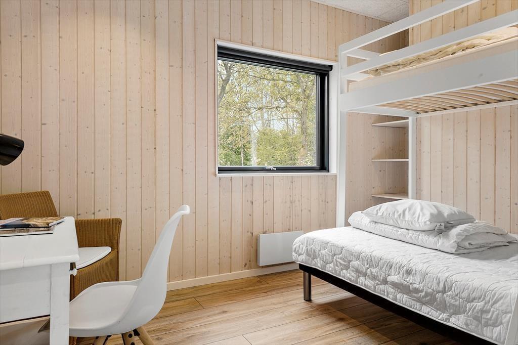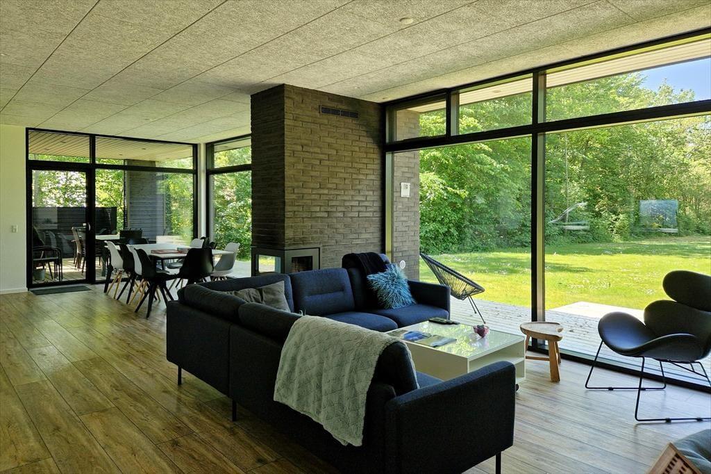Ferien kommer til at udspille sig i moderne og rummelige rammer, for det 141 m2 store sommerhus er opført i 2019 og indrettet på stilfuld vis. Der er dobbeltseng på alle fire soveværelser, og på to af dem er der derudover en køje ovenover, så det er muligt at samle venner eller familie til en god fællesferie. Ved entréen ligger et badeværelse med vaskemaskine og tørretumbler, mens husets andet badeværelse har dør ind til en sauna og videre ud til terrassens udebruser. Det er herligt at kunne slappe af i den varme sauna efter en tur til fjorden – men mon ikke I kommer til at tilbringe endnu flere timer i sommerhusets smukke opholdsrum, hvor stue og køkken er forenet. Her er der alt, hvad I skal bruge, inklusiv indbygningspejs, varmepumpe med køling og fladskærms-tv, men det allerbedste er nu næsten de store, vestvendte vinduespartier, der inviterer solen og limfjordsudsigten indenfor.