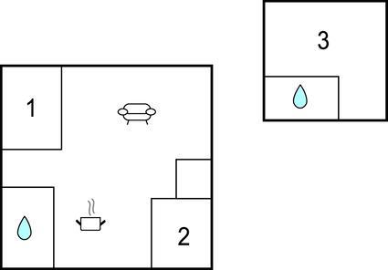 Badeværelse (nr. 1) - WC. Varmt og koldt vand. Bruser