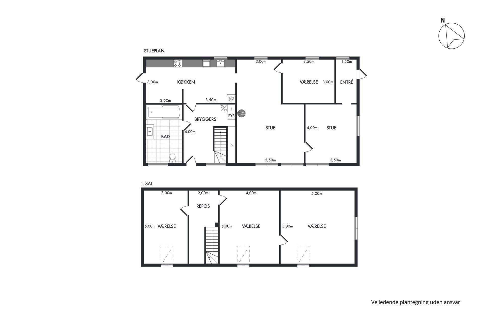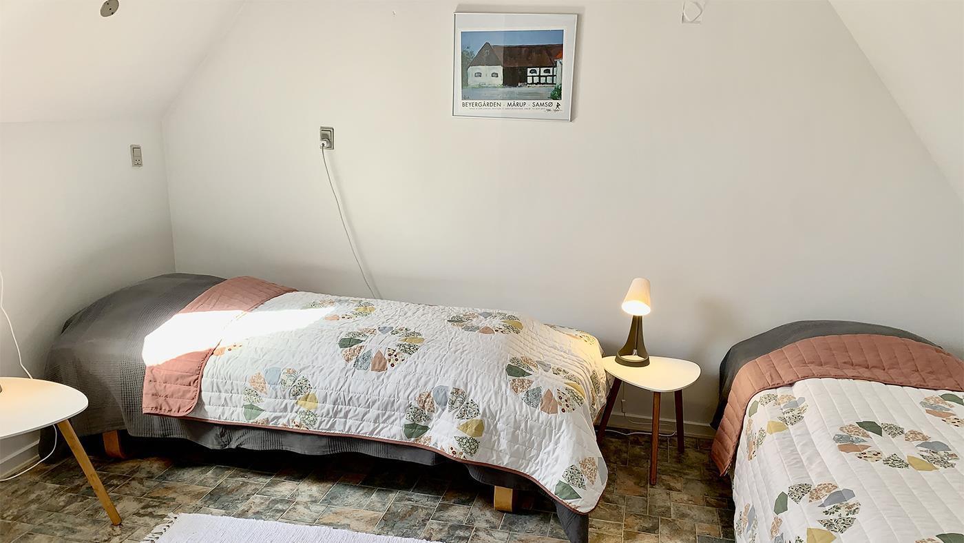 Med fire soveværelser er der god plads til alle. To værelser har dobbeltsenge, ét værelse har to enkeltsenge, og derudover findes et værelse med en 120x200 seng samt en sovesofa. Et af værelserne ligger praktisk placeret i stueetagen, mens de øvrige befinder sig på første sal. Badeværelset er udstyret med bruseniche, og huset opvarmes med både oliefyr og brændeovn, så I kan holde varmen året rundt.