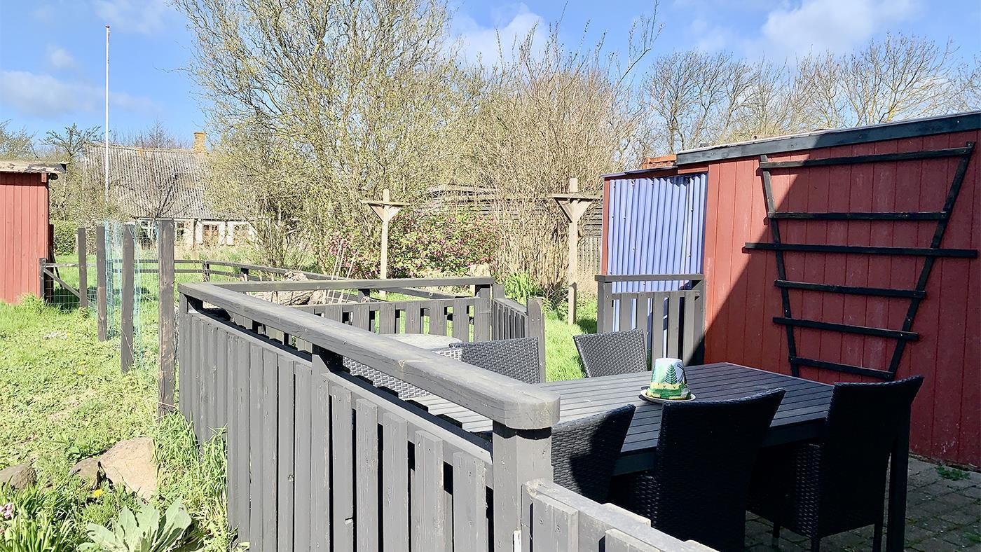 Venter en dejlig have med både terrasse og bålplads, hvor I kan nyde solen, grille eller bare slappe af. Har I hund med, er der mulighed for at opstille et hegn, så den trygt kan løbe delvist frit og være en naturlig del af ferien.