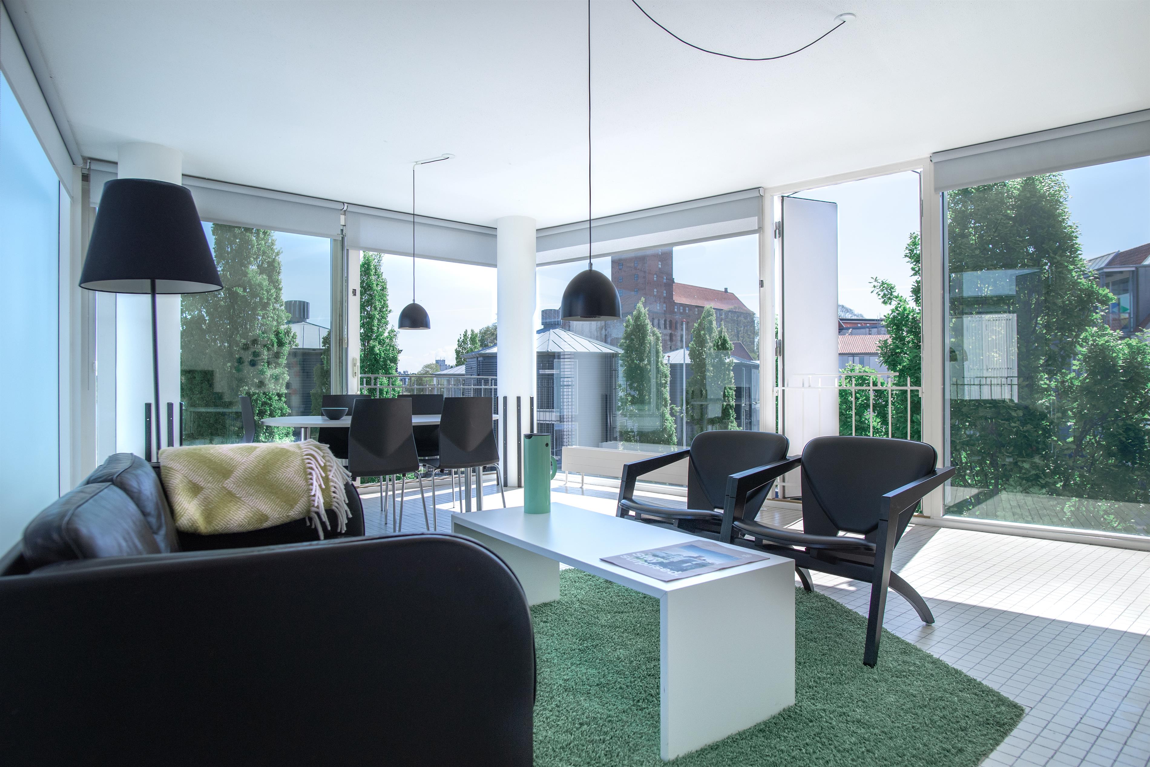 Gårdlejlighederne hos Kolding Hotel Apartments er både placeret i de fritliggende punkthuse, samt i de huse som omkranser punkthusene.