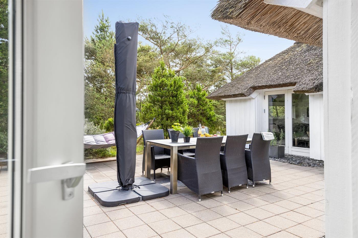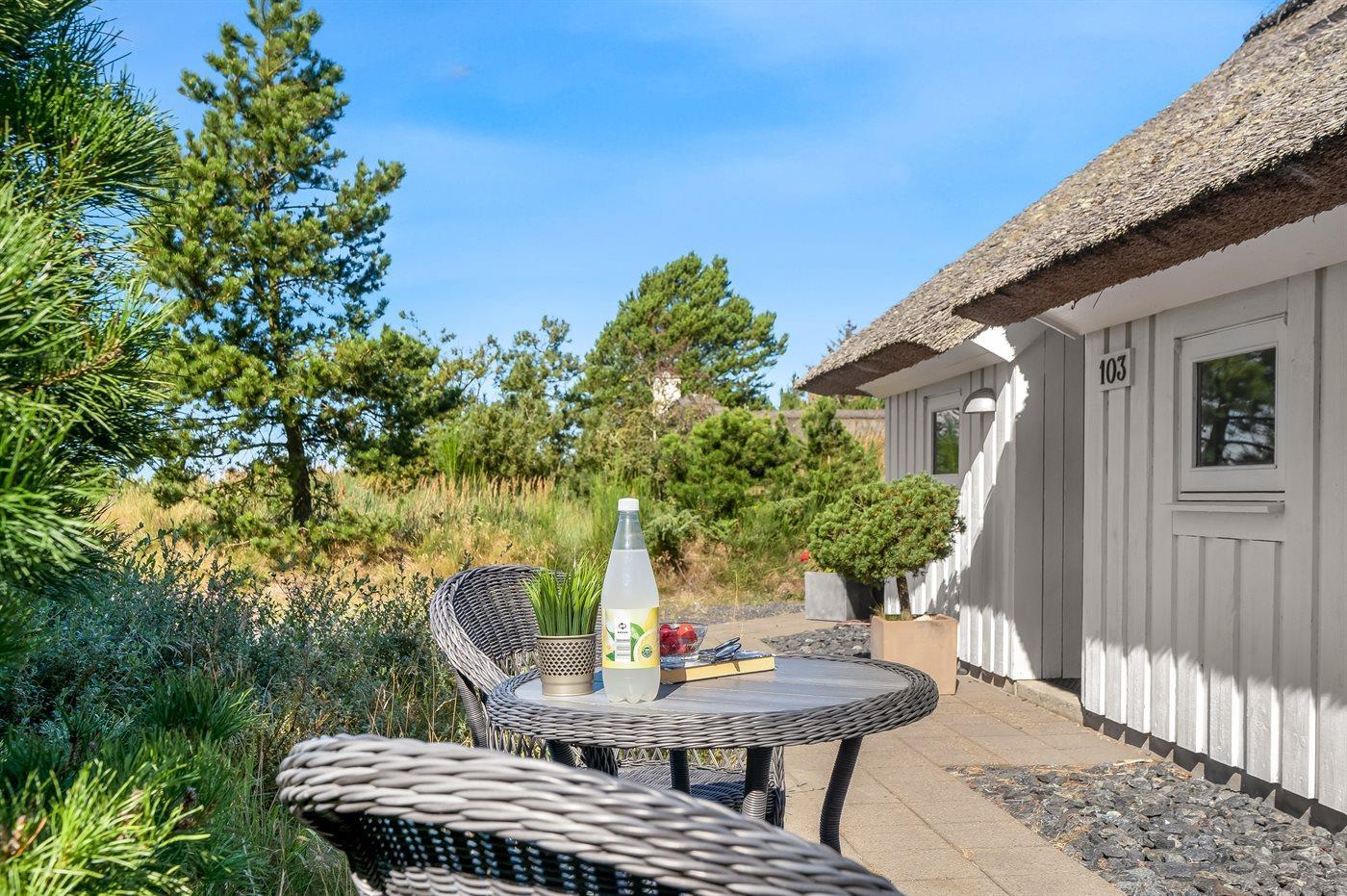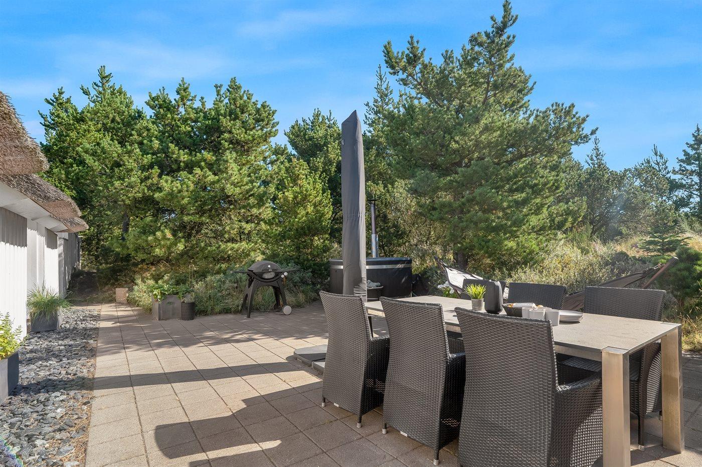 Ferieboligen er beliggende på en 2173 m² stor naturgrund. Der er 1100 m til havet. Nærmeste forretning er beliggende i en afstand af 5000 m. Der er en golfbane i en afstand af 4000 m. Til ferieboligen hører 50 m² terrasseareal. Der er redskabsrum. Grill til rådighed. Parkering ved ferieboligen.