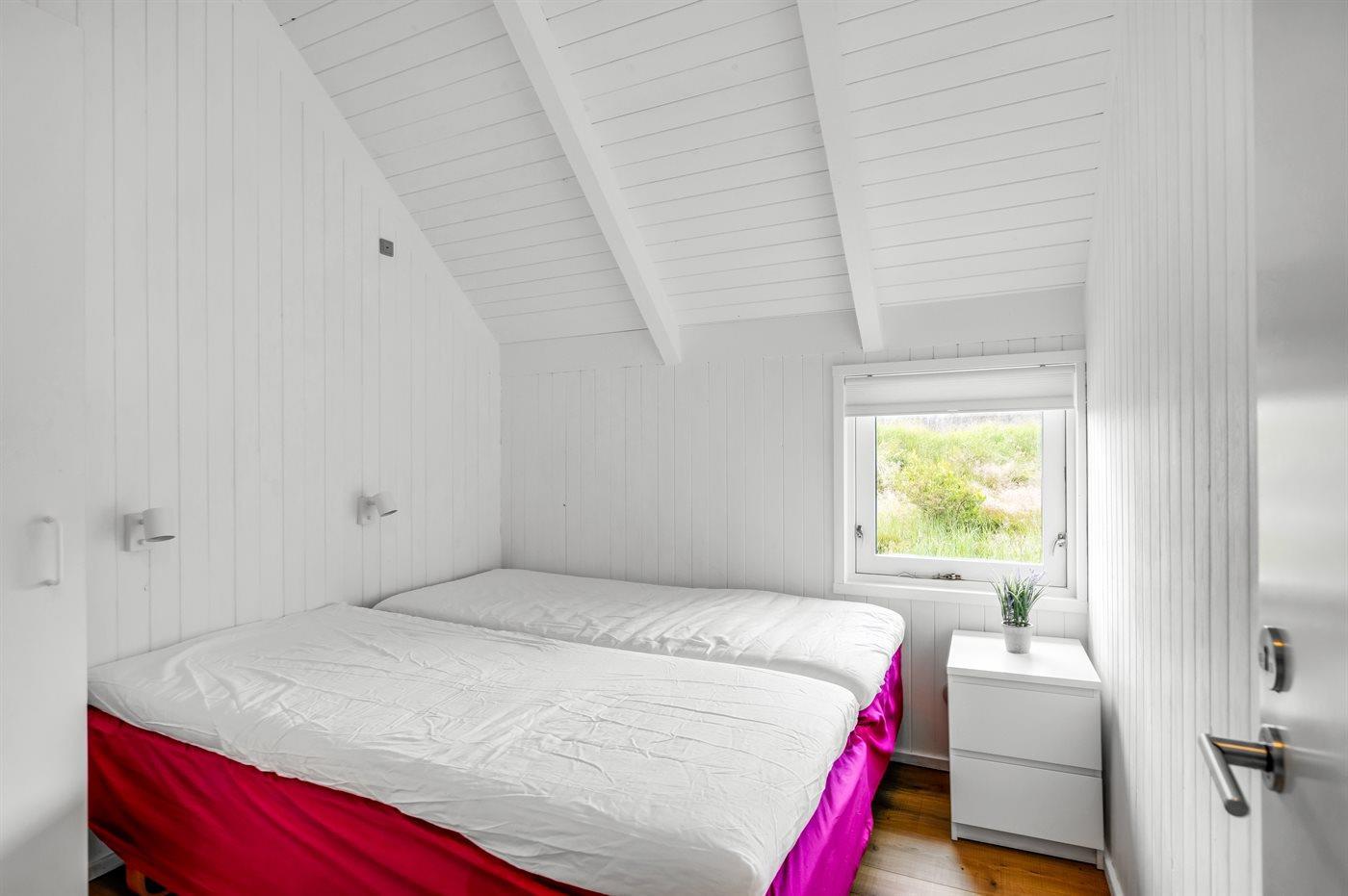 Der er i alt 4 soveværelser. Sovepladserne fordeler sig på: 4 sovepladser i dobbeltsenge. 3 sovepladser i enkeltsenge. Derudover er der 1 stk. barneseng.