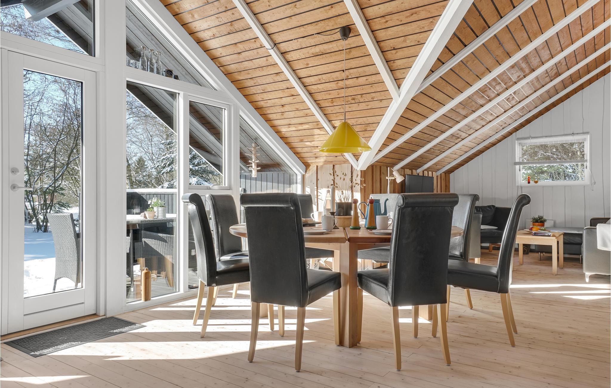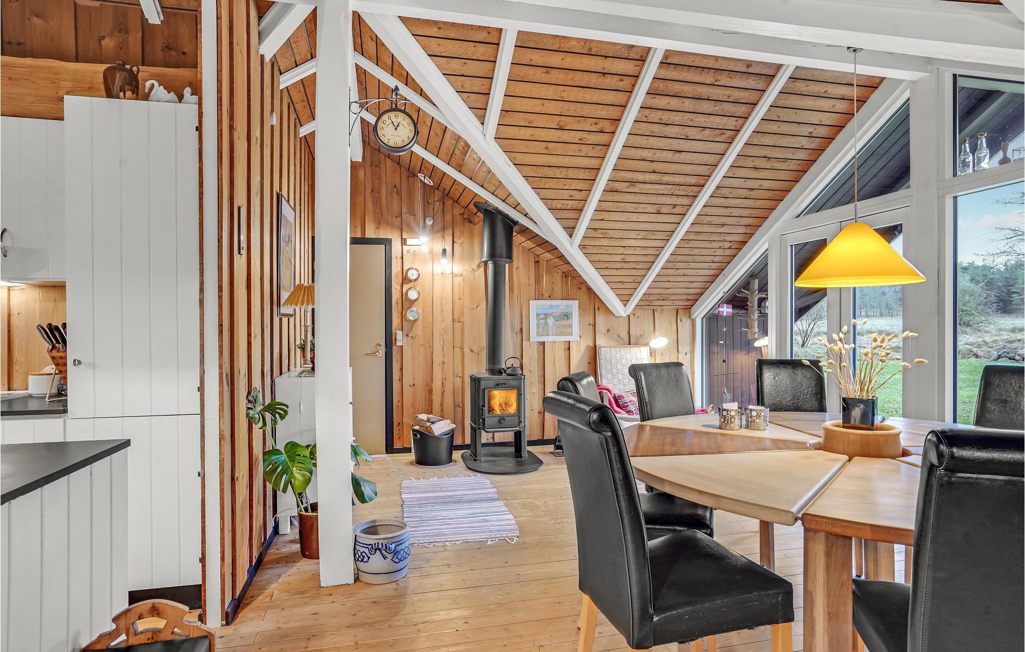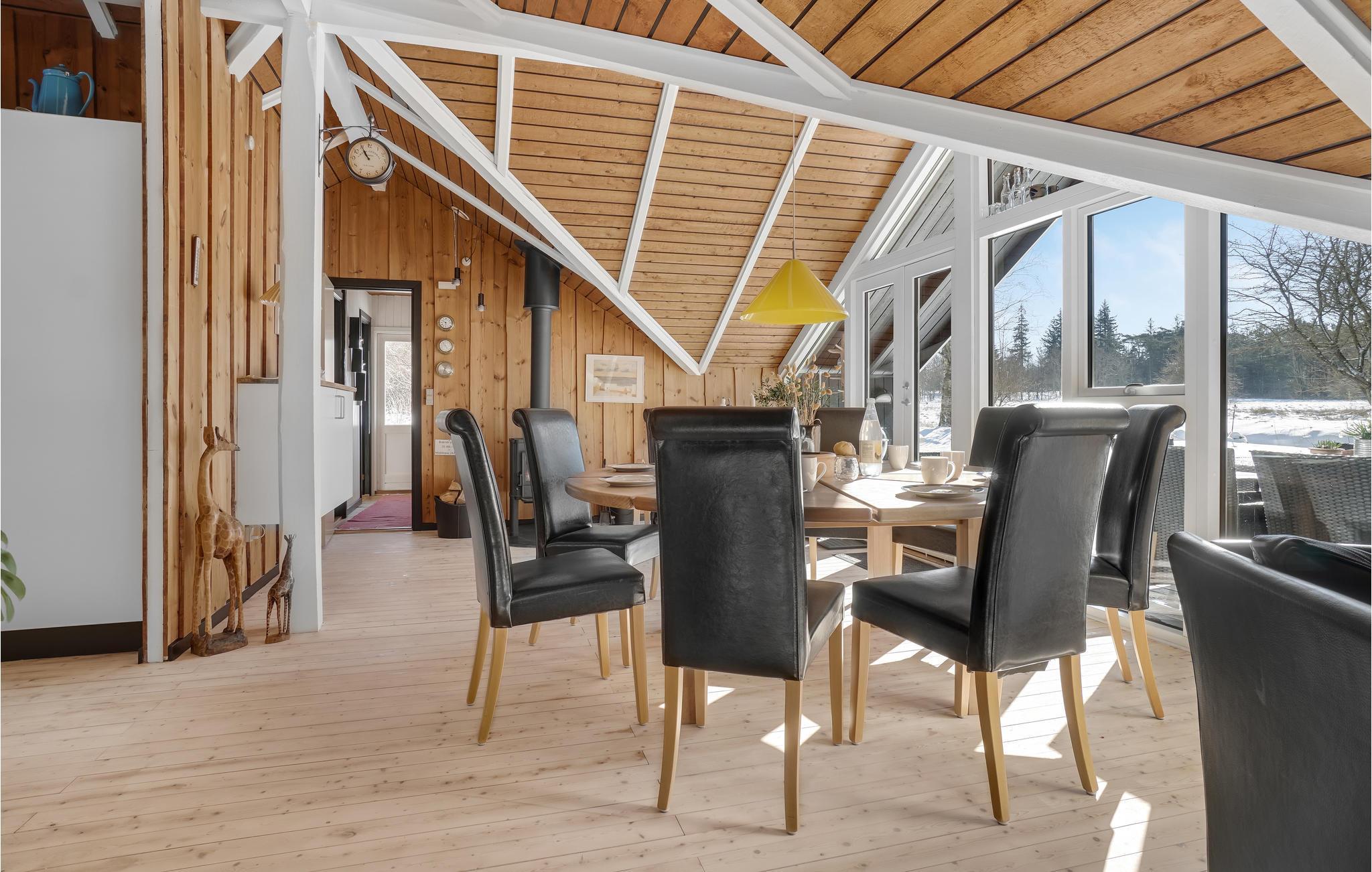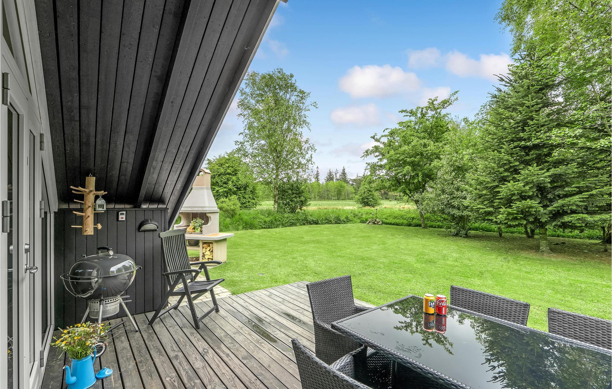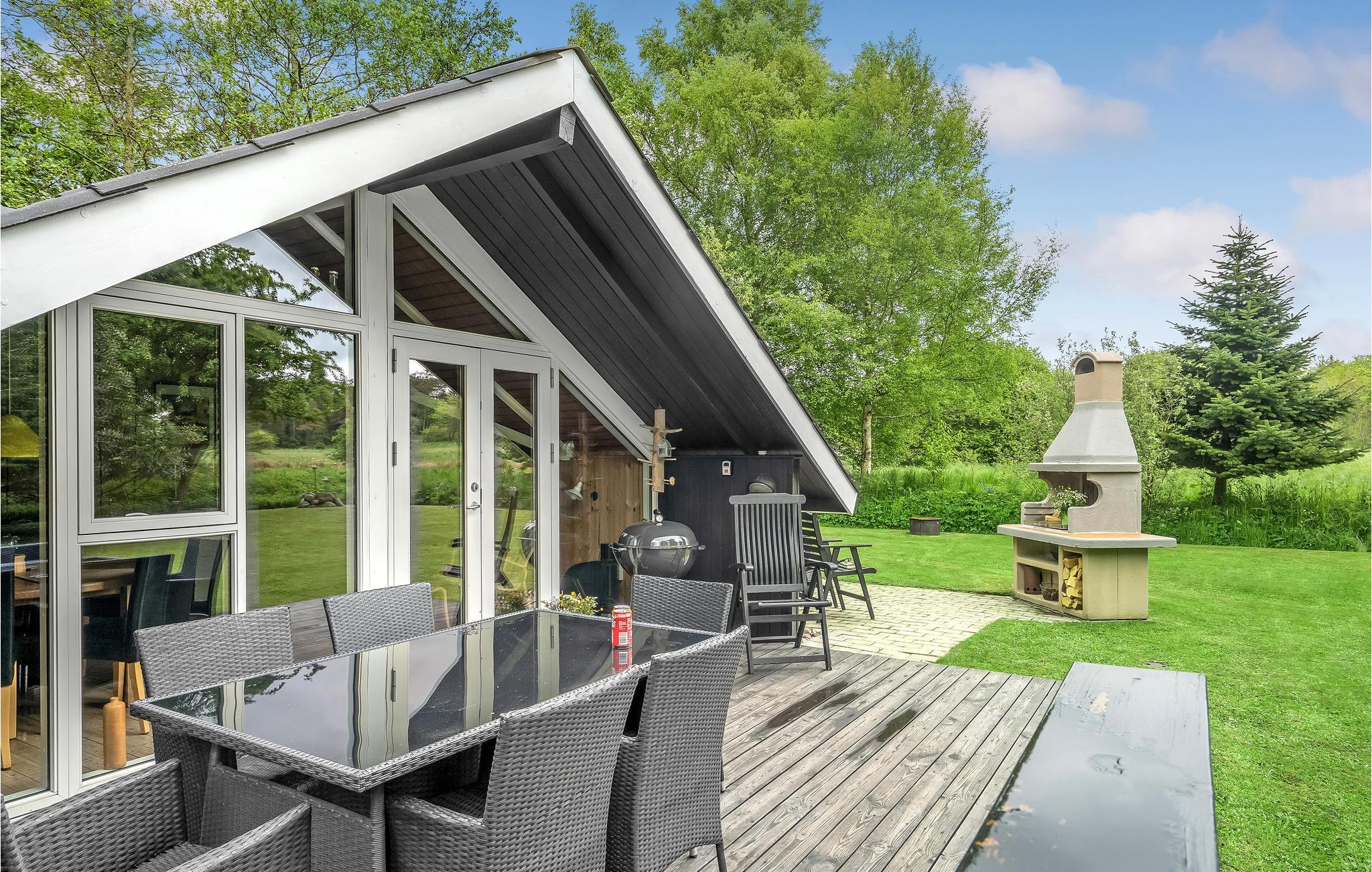 Velkommen til dette dejlige sommerhus, omgivet af træer og en stor græsplæne - det perfekte sted at gå helt ned i gear og lade batterierne op. Start dagen med at tilberede en lækker morgenmad i husets veludstyrede køkken, som efterfølgende kan nydes ved spisepladsen eller ude på terrassen. I løbet af dagen kan I sole jer og fordybe jer i spændende ferielæsning på terrassen, mens børnene løber rundt og leger eller spil bold på græsplanen. Om aftenen kan I tænde op i grillen og tilberede et lækkert feriemåltid til fuglesang fra træerne. Derefter kan I afslutte dagen med at flade ud foran fladskærmen i husets hyggelige stue og streame en god film eller serie via Chromecast.