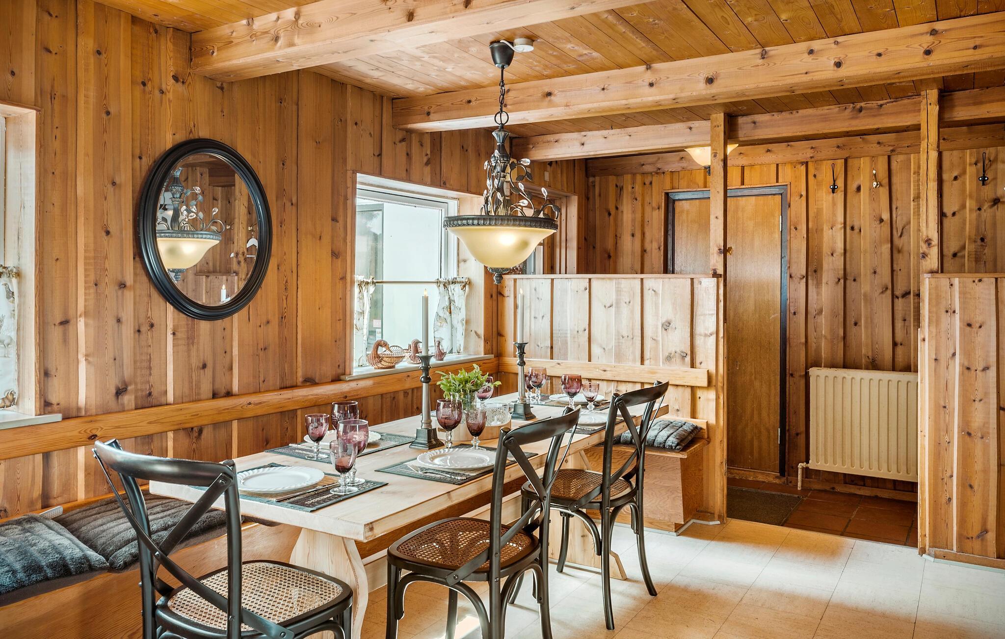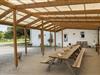 Für ganz besondere kulinarische Erlebnisse steht die großzügige Terrasse mit dem langen Holzesstisch bereit. Servieren Sie hier abends köstliche Mahlzeiten und atmen Sie die frische Urlaubsluft, während Sie den Blick über die weitläufige Landschaft schweifen lassen.