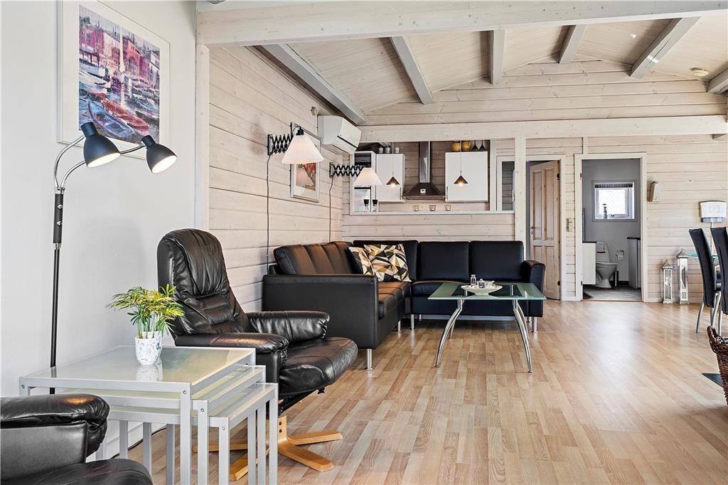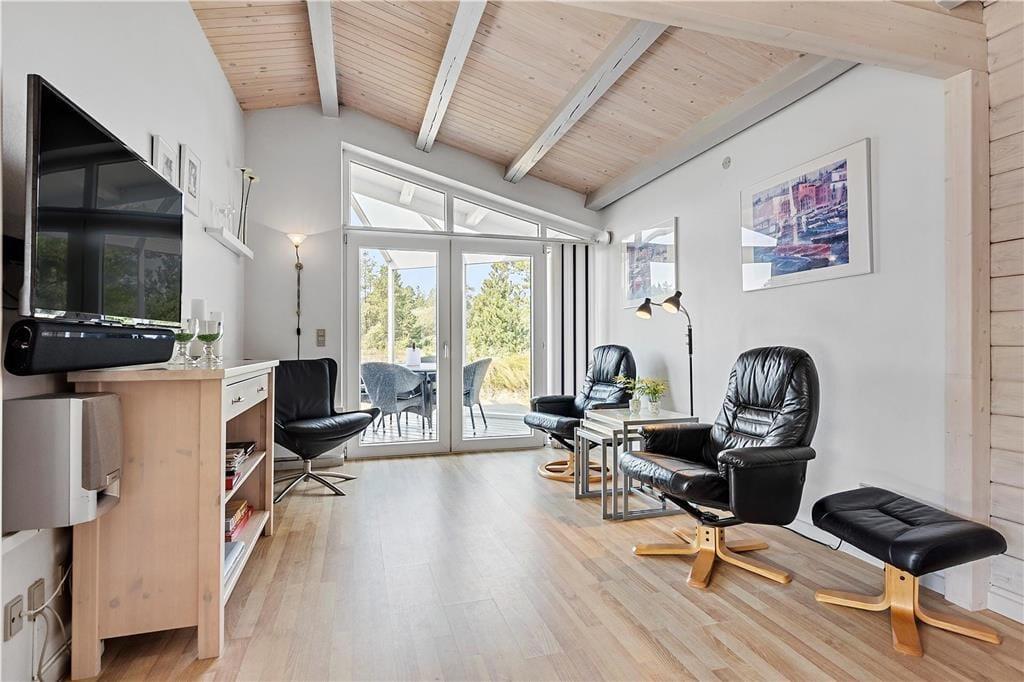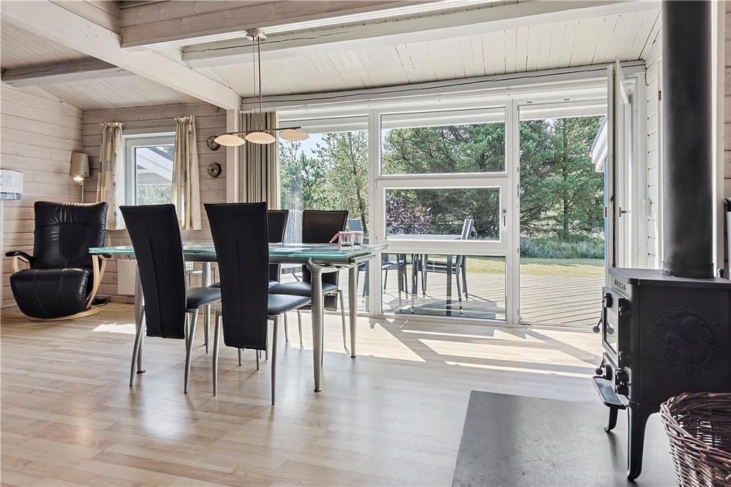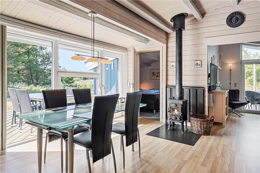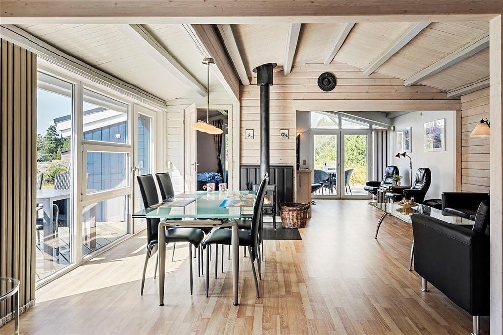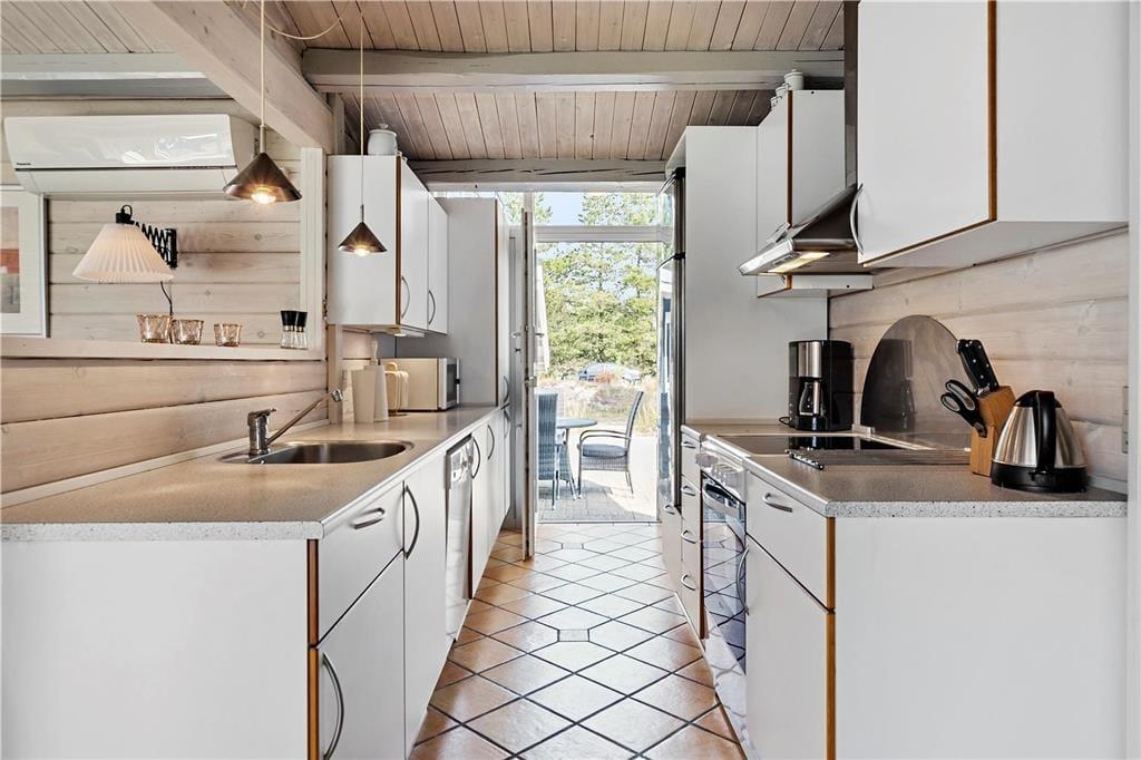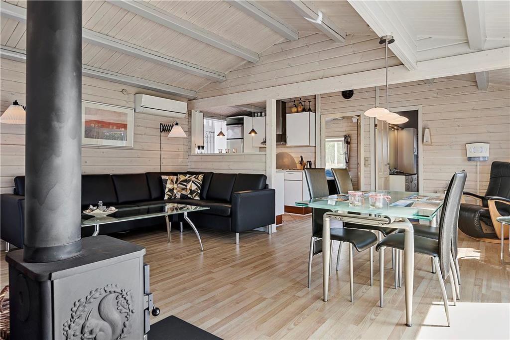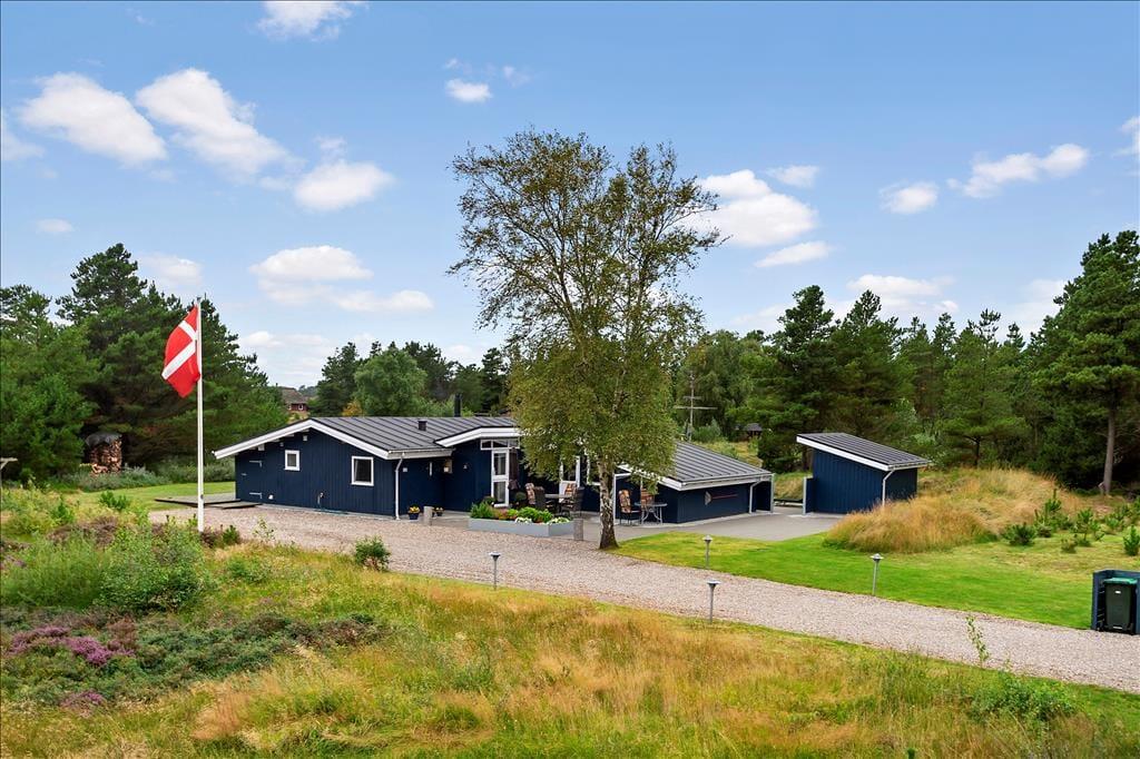 Her I sommerhuset bor I med lilla lyng og stedsegrønne fyrretræer lige udenfor vinduerne, og bare udsigten i sig selv kan hurtigt hjælpe jer med at komme ned i tempo og i den rette feriestemning. Det samme kan selve ferieboligen, der er indrettet på ægte sommerhusmanér med lyse trævægge, brændeovn og andre hyggeskabende detaljer. Udover brændeovnen kan en energisparende varmepumpe tages i brug på kolde dage, og den kan for øvrigt også køle, hvis det bliver for hedt om sommeren. Planløsningen er særdeles velfungerende, for køkken og stue er slået sammen i et – så det er med andre ord det oplagte samlingspunkt, når I vil hygge jer med madlavning, måltider, en god film eller andre ferieaktiviteter. På husets to soveværelser kan I få en god nats søvn i de komfortable dobbeltsenge, og også på badeværelset er der gjort lidt ekstra ud af indretningen, for her er der på luksuriøs vis installeret et dampbad.