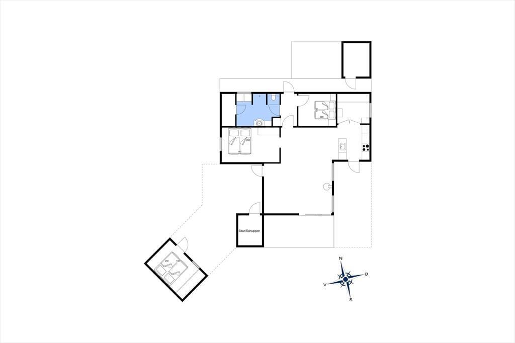 Sommerhus og anneks forbindes af en stor træterrasse, der er orienteret mod sydvest. Sydøst for huset ligger endnu en terrasse, der er delvist overdækket, så med andre ord kan I nemt finde den perfekte opholdsplads uanset tidspunktet og solforholdene. På grunden er der også en græsplæne med plads til leg og havespil, og bilen kan parkeres i carporten.