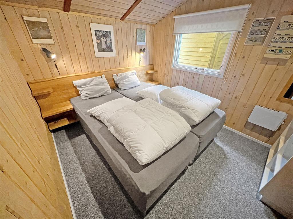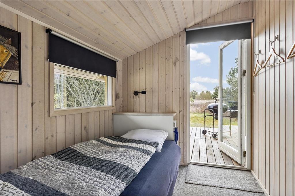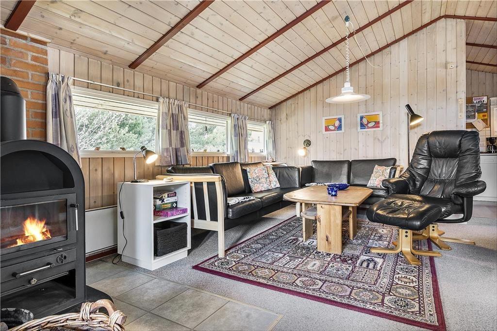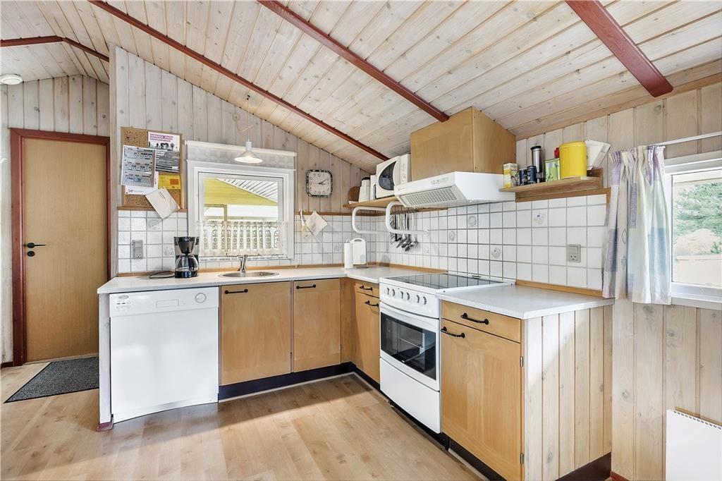 Hver eneste af de 64 m2 er godt udnyttede i sommerhuset, der blandt andet byder på en dejlig udestue, en stor stue med integreret køkken samt to gode soveværelser med i alt fem sengepladser. Alle rum fremstår pæne og velholdte – ikke mindst det funktionelt indrettede badeværelse. I stuen kan I for eksempel slænge jer i sofaafdelingen, hvor I har både fladskærms-TV og brændeovn lige i nærheden. Har I ikke brug for en brændeovn, kan det være, at I rykker ud i udestuen i stedet for at nyde solskinsvejret og de flotte naturomgivelser.