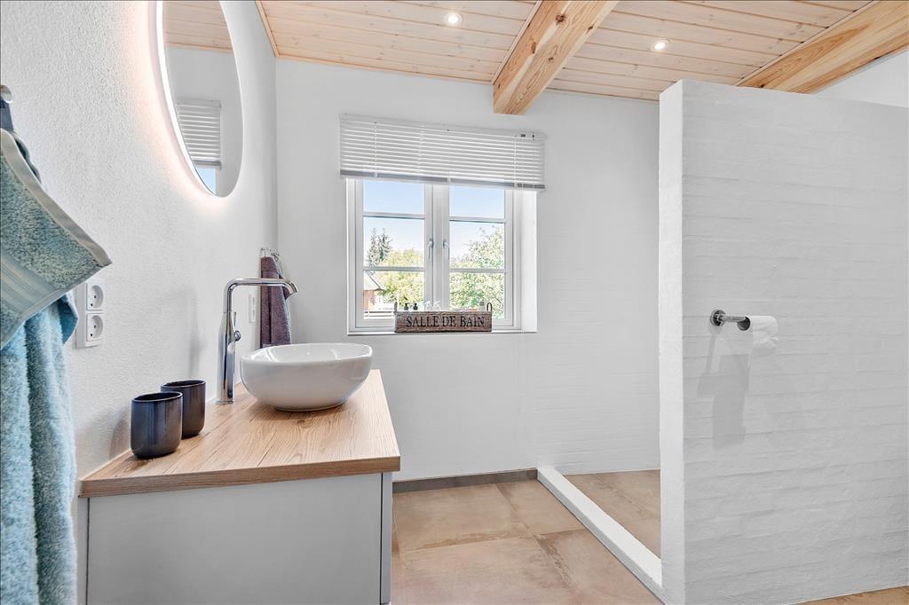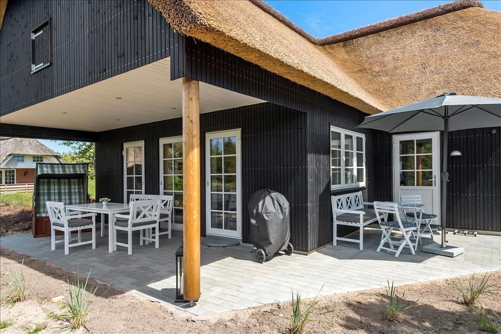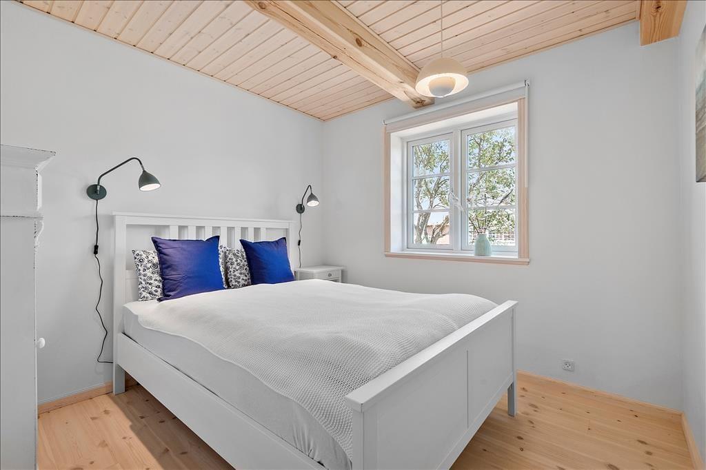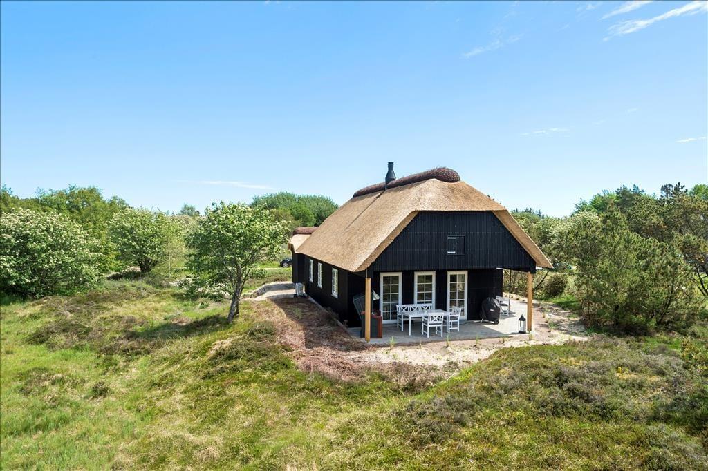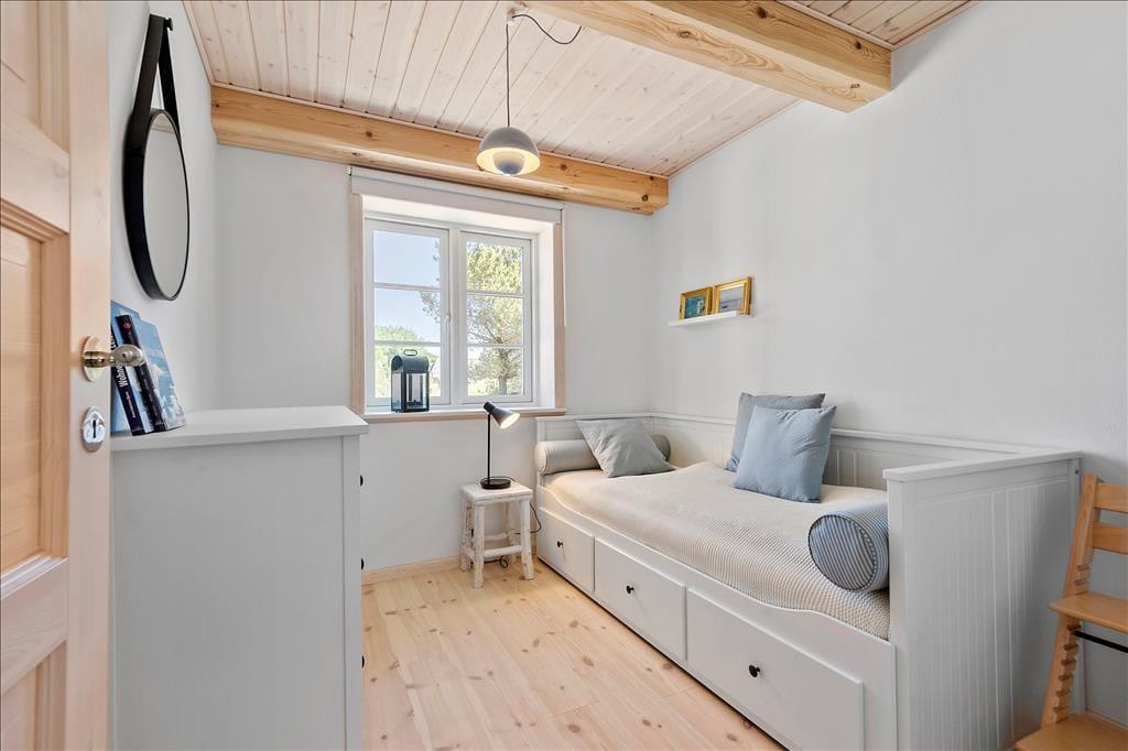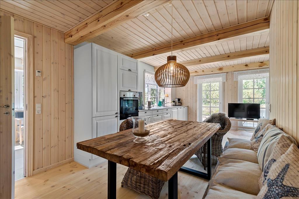 Da sommerhuset blev opført i 2021, blev det opført i klassisk stil med stråtag, hvide sprossevinduer og sortmalet træfacade. Også inden døre er det lykkedes at skabe en varm og venlig atmosfære – præcis som der skal være i et rigtigt sommerhus. I stuen er der trælister på vægge og lofter, og et flot åbent køkken passer godt ind i de lyse og hyggelige omgivelser. En brændeovn står klar til at sprede god stemning, og der er også varmepumpe til eventuelle kølige aftener. På de tre soveværelser fortsætter den gode indretningsstil, og også badeværelset og entréen fremstår lyse og indbydende.